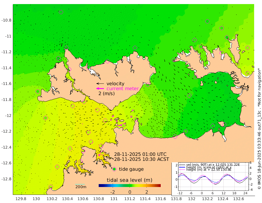 109cm/s 78T +4cm/s rms + 6cm/s 51T. Darwin_C1 52m 55cm/s 90T +4cm/s rms + 7cm/s -161T. Darwin_CW1 22m 35cm/s 75T +4cm/s rms + 8cm/s 61T. Darwin_CW2 34m 57cm/s 46T +3cm/s rms + 9cm/s 98T. Darwin_CW3 22m 49cm/s 89T +5cm/s rms + 7cm/s 88T. Darwin_C3 56m 56cm/s 64T +2cm/s rms + 9cm/s -126T. Darwin_CTbW 22m 15cm/s 90T +1cm/s rms + 1cm/s -47T. DARBGF 30m 15cm/s 105T +4cm/s rms + 3cm/s 80T. NRSDAR 19m -2cm Goodrich Bank 63cm Point Jenny 63cm Native Point 57cm Fish Reef 77cm Tapa Bay 25cm Point Fawcett (Offshore) 68cm Burge Point 69cm Munkunuwa 41cm Beagle A 87cm Parsons Bank 63cm Fenton Patches 86cm Hancox Shoal Area 77cm Nightcliff 83cm Darwin 76cm Charles Point Patches 53cm Glyde Point 30cm Chambers Bay 24cm Point Stuart 42cm Cape Hotham 28cm Christine Reef 21cm West Alligator Head 3cm East Field Island 31cm Two Hills Bay 28cm Camp Point 65cm Medina Inlet South 26cm South Barlow Point 10cm St. Asaph Bay 3cm Cape Van Dieman 6cm Snake Bay 2cm Cache Point 11cm Point Jahleel (Off) 31cm Cape Don 26cm Port Essington 29cm Smith Point - West 32cm NW Peacock Island 12cm North Of Jones Shoal 7cm Peacock Island 59cm Point David 38cm D'urville Point 61cm Copeland Island 47cm One Tree Point