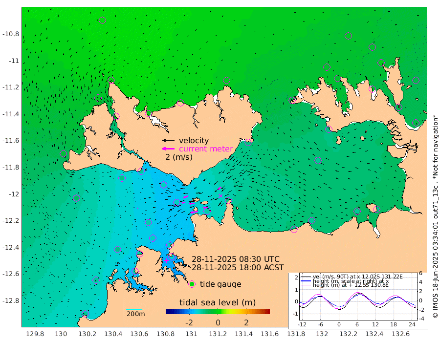 122cm/s -102T +4cm/s rms + 6cm/s 51T. Darwin_C1 52m 69cm/s -90T +4cm/s rms + 7cm/s -161T. Darwin_CW1 22m 50cm/s -106T +4cm/s rms + 8cm/s 61T. Darwin_CW2 34m 66cm/s -134T +3cm/s rms + 9cm/s 98T. Darwin_CW3 22m 78cm/s -90T +5cm/s rms + 7cm/s 88T. Darwin_C3 56m 72cm/s -115T +2cm/s rms + 9cm/s -126T. Darwin_CTbW 22m 6cm/s -129T +1cm/s rms + 1cm/s -47T. DARBGF 30m 6cm/s -164T +4cm/s rms + 3cm/s 80T. NRSDAR 19m 3cm Goodrich Bank -104cm Point Jenny -104cm Native Point -99cm Fish Reef -118cm Tapa Bay -41cm Point Fawcett (Offshore) -123cm Burge Point -98cm Munkunuwa -78cm Beagle A -127cm Parsons Bank -115cm Fenton Patches -131cm Hancox Shoal Area -131cm Nightcliff -139cm Darwin -124cm Charles Point Patches -113cm Glyde Point -111cm Chambers Bay -103cm Point Stuart -98cm Cape Hotham -105cm Christine Reef -110cm West Alligator Head -105cm East Field Island -90cm Two Hills Bay -93cm Camp Point -109cm Medina Inlet South -33cm South Barlow Point -14cm St. Asaph Bay 1cm Cape Van Dieman -3cm Snake Bay -3cm Cache Point -15cm Point Jahleel (Off) -56cm Cape Don -28cm Port Essington -27cm Smith Point - West -28cm NW Peacock Island -11cm North Of Jones Shoal -6cm Peacock Island -51cm Point David -33cm D'urville Point -53cm Copeland Island -47cm One Tree Point
