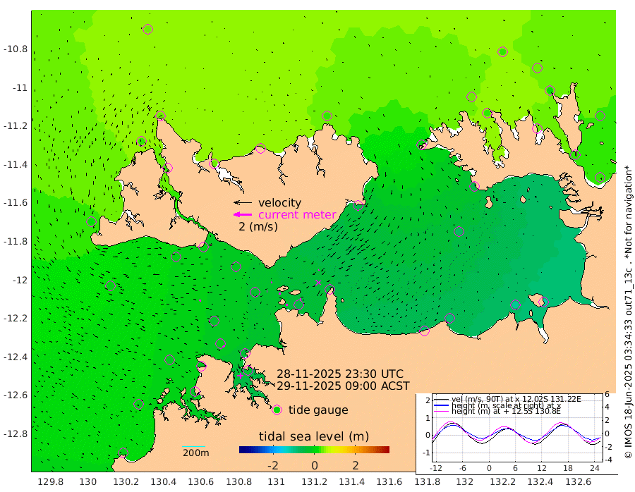 18cm/s 80T +4cm/s rms + 6cm/s 51T. Darwin_C1 52m 14cm/s 82T +4cm/s rms + 7cm/s -161T. Darwin_CW1 22m 6cm/s -113T +4cm/s rms + 8cm/s 61T. Darwin_CW2 34m 11cm/s -164T +3cm/s rms + 9cm/s 98T. Darwin_CW3 22m 16cm/s -86T +5cm/s rms + 7cm/s 88T. Darwin_C3 56m 11cm/s 58T +2cm/s rms + 9cm/s -126T. Darwin_CTbW 22m 18cm/s 100T +1cm/s rms + 1cm/s -47T. DARBGF 30m 20cm/s 127T +4cm/s rms + 3cm/s 80T. NRSDAR 19m 40cm Goodrich Bank -9cm Point Jenny -7cm Native Point -15cm Fish Reef -13cm Tapa Bay 22cm Point Fawcett (Offshore) -25cm Burge Point -1cm Munkunuwa -11cm Beagle A -12cm Parsons Bank -32cm Fenton Patches -25cm Hancox Shoal Area -41cm Nightcliff -27cm Darwin -11cm Charles Point Patches -48cm Glyde Point -86cm Chambers Bay -88cm Point Stuart -56cm Cape Hotham -75cm Christine Reef -103cm West Alligator Head -123cm East Field Island -58cm Two Hills Bay -57cm Camp Point -11cm Medina Inlet South 32cm South Barlow Point 32cm St. Asaph Bay 43cm Cape Van Dieman 42cm Snake Bay 36cm Cache Point 25cm Point Jahleel (Off) 6cm Cape Don 36cm Port Essington 33cm Smith Point - West 35cm NW Peacock Island 33cm North Of Jones Shoal 12cm Peacock Island 32cm Point David 36cm D'urville Point 30cm Copeland Island 30cm One Tree Point