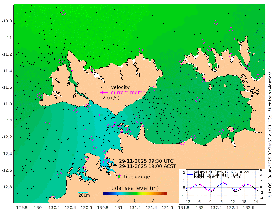 93cm/s -102T +4cm/s rms + 6cm/s 51T. Darwin_C1 52m 49cm/s -89T +4cm/s rms + 7cm/s -161T. Darwin_CW1 22m 46cm/s -107T +4cm/s rms + 8cm/s 61T. Darwin_CW2 34m 50cm/s -132T +3cm/s rms + 9cm/s 98T. Darwin_CW3 22m 67cm/s -91T +5cm/s rms + 7cm/s 88T. Darwin_C3 56m 57cm/s -115T +2cm/s rms + 9cm/s -126T. Darwin_CTbW 22m 8cm/s -110T +1cm/s rms + 1cm/s -47T. DARBGF 30m 5cm/s -121T +4cm/s rms + 3cm/s 80T. NRSDAR 19m 12cm Goodrich Bank -88cm Point Jenny -87cm Native Point -82cm Fish Reef -99cm Tapa Bay -30cm Point Fawcett (Offshore) -103cm Burge Point -84cm Munkunuwa -63cm Beagle A -106cm Parsons Bank -95cm Fenton Patches -108cm Hancox Shoal Area -109cm Nightcliff -113cm Darwin -100cm Charles Point Patches -89cm Glyde Point -87cm Chambers Bay -78cm Point Stuart -76cm Cape Hotham -81cm Christine Reef -82cm West Alligator Head -75cm East Field Island -68cm Two Hills Bay -70cm Camp Point -90cm Medina Inlet South -23cm South Barlow Point -6cm St. Asaph Bay 9cm Cape Van Dieman 7cm Snake Bay 6cm Cache Point -4cm Point Jahleel (Off) -41cm Cape Don -16cm Port Essington -16cm Smith Point - West -16cm NW Peacock Island -1cm North Of Jones Shoal -2cm Peacock Island -38cm Point David -21cm D'urville Point -40cm Copeland Island -33cm One Tree Point