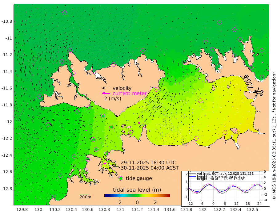 14cm/s -101T +4cm/s rms + 6cm/s 51T. Darwin_C1 52m 2cm/s -158T +4cm/s rms + 7cm/s -161T. Darwin_CW1 22m 2cm/s 72T +4cm/s rms + 8cm/s 61T. Darwin_CW2 34m 13cm/s 24T +3cm/s rms + 9cm/s 98T. Darwin_CW3 22m 18cm/s 94T +5cm/s rms + 7cm/s 88T. Darwin_C3 56m 8cm/s -123T +2cm/s rms + 9cm/s -126T. Darwin_CTbW 22m 30cm/s -83T +1cm/s rms + 1cm/s -47T. DARBGF 30m 32cm/s -55T +4cm/s rms + 3cm/s 80T. NRSDAR 19m -45cm Goodrich Bank -2cm Point Jenny -2cm Native Point 1cm Fish Reef 5cm Tapa Bay -36cm Point Fawcett (Offshore) 20cm Burge Point -8cm Munkunuwa -10cm Beagle A 10cm Parsons Bank 16cm Fenton Patches 20cm Hancox Shoal Area 26cm Nightcliff 30cm Darwin 14cm Charles Point Patches 50cm Glyde Point 87cm Chambers Bay 94cm Point Stuart 53cm Cape Hotham 78cm Christine Reef 107cm West Alligator Head 130cm East Field Island 58cm Two Hills Bay 68cm Camp Point 6cm Medina Inlet South -41cm South Barlow Point -45cm St. Asaph Bay -49cm Cape Van Dieman -47cm Snake Bay -44cm Cache Point -33cm Point Jahleel (Off) -2cm Cape Don -33cm Port Essington -39cm Smith Point - West -37cm NW Peacock Island -37cm North Of Jones Shoal -13cm Peacock Island -24cm Point David -39cm D'urville Point -22cm Copeland Island -21cm One Tree Point