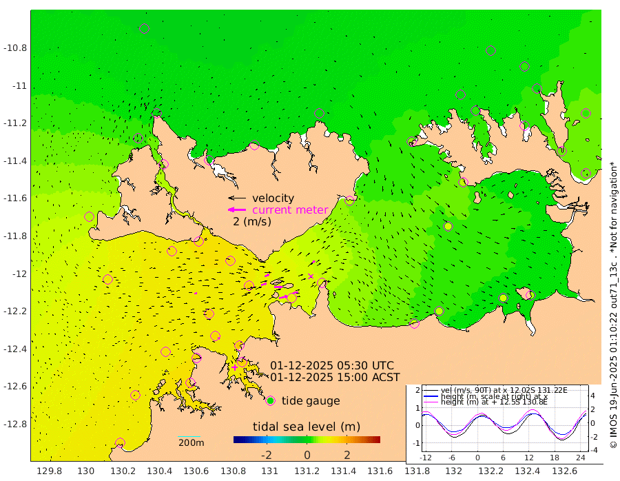 96cm/s 78T +4cm/s rms + 6cm/s 51T. Darwin_C1 52m 65cm/s 89T +4cm/s rms + 7cm/s -161T. Darwin_CW1 22m 62cm/s 74T +4cm/s rms + 8cm/s 61T. Darwin_CW2 34m 46cm/s 47T +3cm/s rms + 9cm/s 98T. Darwin_CW3 22m 89cm/s 89T +5cm/s rms + 7cm/s 88T. Darwin_C3 56m 55cm/s 65T +2cm/s rms + 9cm/s -126T. Darwin_CTbW 22m 29cm/s 84T +1cm/s rms + 1cm/s -47T. DARBGF 30m 25cm/s 110T +4cm/s rms + 3cm/s 80T. NRSDAR 19m -3cm Goodrich Bank 137cm Point Jenny 133cm Native Point 132cm Fish Reef 148cm Tapa Bay 67cm Point Fawcett (Offshore) 148cm Burge Point 130cm Munkunuwa 114cm Beagle A 145cm Parsons Bank 148cm Fenton Patches 151cm Hancox Shoal Area 160cm Nightcliff 151cm Darwin 142cm Charles Point Patches 110cm Glyde Point 94cm Chambers Bay 76cm Point Stuart 93cm Cape Hotham 87cm Christine Reef 79cm West Alligator Head 65cm East Field Island 72cm Two Hills Bay 72cm Camp Point 131cm Medina Inlet South 48cm South Barlow Point 33cm St. Asaph Bay 1cm Cape Van Dieman -1cm Snake Bay 7cm Cache Point 17cm Point Jahleel (Off) 47cm Cape Don 21cm Port Essington 28cm Smith Point - West 23cm NW Peacock Island 9cm North Of Jones Shoal 5cm Peacock Island 36cm Point David 29cm D'urville Point 40cm Copeland Island 30cm One Tree Point