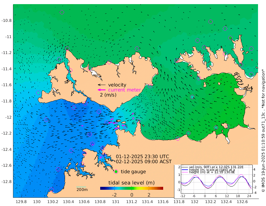 136cm/s -102T +4cm/s rms + 6cm/s 51T. Darwin_C1 52m 94cm/s -90T +4cm/s rms + 7cm/s -161T. Darwin_CW1 22m 92cm/s -107T +4cm/s rms + 8cm/s 61T. Darwin_CW2 34m 57cm/s -132T +3cm/s rms + 9cm/s 98T. Darwin_CW3 22m 126cm/s -91T +5cm/s rms + 7cm/s 88T. Darwin_C3 56m 85cm/s -116T +2cm/s rms + 9cm/s -126T. Darwin_CTbW 22m 48cm/s -95T +1cm/s rms + 1cm/s -47T. DARBGF 30m 39cm/s -64T +4cm/s rms + 3cm/s 80T. NRSDAR 19m -52cm Goodrich Bank -216cm Point Jenny -215cm Native Point -220cm Fish Reef -230cm Tapa Bay -141cm Point Fawcett (Offshore) -240cm Burge Point -208cm Munkunuwa -206cm Beagle A -225cm Parsons Bank -242cm Fenton Patches -222cm Hancox Shoal Area -241cm Nightcliff -239cm Darwin -228cm Charles Point Patches -170cm Glyde Point -117cm Chambers Bay -101cm Point Stuart -141cm Cape Hotham -114cm Christine Reef -102cm West Alligator Head -80cm East Field Island -109cm Two Hills Bay -109cm Camp Point -217cm Medina Inlet South -122cm South Barlow Point -98cm St. Asaph Bay -58cm Cape Van Dieman -62cm Snake Bay -64cm Cache Point -71cm Point Jahleel (Off) -96cm Cape Don -70cm Port Essington -78cm Smith Point - West -71cm NW Peacock Island -56cm North Of Jones Shoal -21cm Peacock Island -75cm Point David -78cm D'urville Point -75cm Copeland Island -72cm One Tree Point