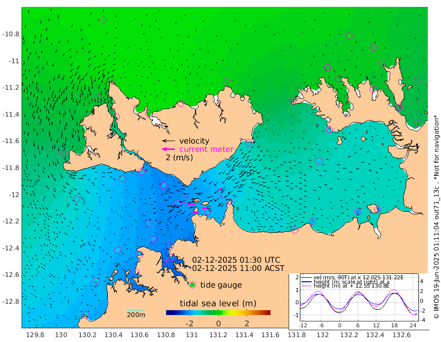 102cm/s -101T +4cm/s rms + 6cm/s 51T. Darwin_C1 52m 93cm/s -91T +4cm/s rms + 7cm/s -161T. Darwin_CW1 22m 56cm/s -106T +4cm/s rms + 8cm/s 61T. Darwin_CW2 34m 64cm/s -139T +3cm/s rms + 9cm/s 98T. Darwin_CW3 22m 102cm/s -90T +5cm/s rms + 7cm/s 88T. Darwin_C3 56m 55cm/s -116T +2cm/s rms + 9cm/s -126T. Darwin_CTbW 22m 9cm/s 138T +1cm/s rms + 1cm/s -47T. DARBGF 30m 16cm/s 143T +4cm/s rms + 3cm/s 80T. NRSDAR 19m 14cm Goodrich Bank -142cm Point Jenny -141cm Native Point -152cm Fish Reef -165cm Tapa Bay -51cm Point Fawcett (Offshore) -187cm Burge Point -135cm Munkunuwa -129cm Beagle A -172cm Parsons Bank -188cm Fenton Patches -184cm Hancox Shoal Area -197cm Nightcliff -205cm Darwin -177cm Charles Point Patches -179cm Glyde Point -177cm Chambers Bay -181cm Point Stuart -166cm Cape Hotham -167cm Christine Reef -197cm West Alligator Head -207cm East Field Island -146cm Two Hills Bay -154cm Camp Point -155cm Medina Inlet South -37cm South Barlow Point -14cm St. Asaph Bay 14cm Cape Van Dieman 7cm Snake Bay 6cm Cache Point -16cm Point Jahleel (Off) -63cm Cape Don -16cm Port Essington -16cm Smith Point - West -16cm NW Peacock Island 2cm North Of Jones Shoal -1cm Peacock Island -38cm Point David -19cm D'urville Point -41cm Copeland Island -34cm One Tree Point