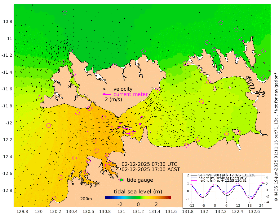 120cm/s 78T +4cm/s rms + 6cm/s 51T. Darwin_C1 52m 102cm/s 92T +4cm/s rms + 7cm/s -161T. Darwin_CW1 22m 74cm/s 73T +4cm/s rms + 8cm/s 61T. Darwin_CW2 34m 71cm/s 43T +3cm/s rms + 9cm/s 98T. Darwin_CW3 22m 122cm/s 90T +5cm/s rms + 7cm/s 88T. Darwin_C3 56m 60cm/s 66T +2cm/s rms + 9cm/s -126T. Darwin_CTbW 22m 15cm/s 65T +1cm/s rms + 1cm/s -47T. DARBGF 30m 8cm/s 77T +4cm/s rms + 3cm/s 80T. NRSDAR 19m -13cm Goodrich Bank 157cm Point Jenny 153cm Native Point 158cm Fish Reef 176cm Tapa Bay 68cm Point Fawcett (Offshore) 187cm Burge Point 150cm Munkunuwa 133cm Beagle A 175cm Parsons Bank 185cm Fenton Patches 188cm Hancox Shoal Area 200cm Nightcliff 197cm Darwin 179cm Charles Point Patches 158cm Glyde Point 151cm Chambers Bay 139cm Point Stuart 140cm Cape Hotham 143cm Christine Reef 151cm West Alligator Head 149cm East Field Island 117cm Two Hills Bay 122cm Camp Point 160cm Medina Inlet South 44cm South Barlow Point 27cm St. Asaph Bay -12cm Cape Van Dieman -13cm Snake Bay -3cm Cache Point 14cm Point Jahleel (Off) 57cm Cape Don 14cm Port Essington 19cm Smith Point - West 14cm NW Peacock Island 1cm North Of Jones Shoal 1cm Peacock Island 27cm Point David 18cm D'urville Point 31cm Copeland Island 24cm One Tree Point