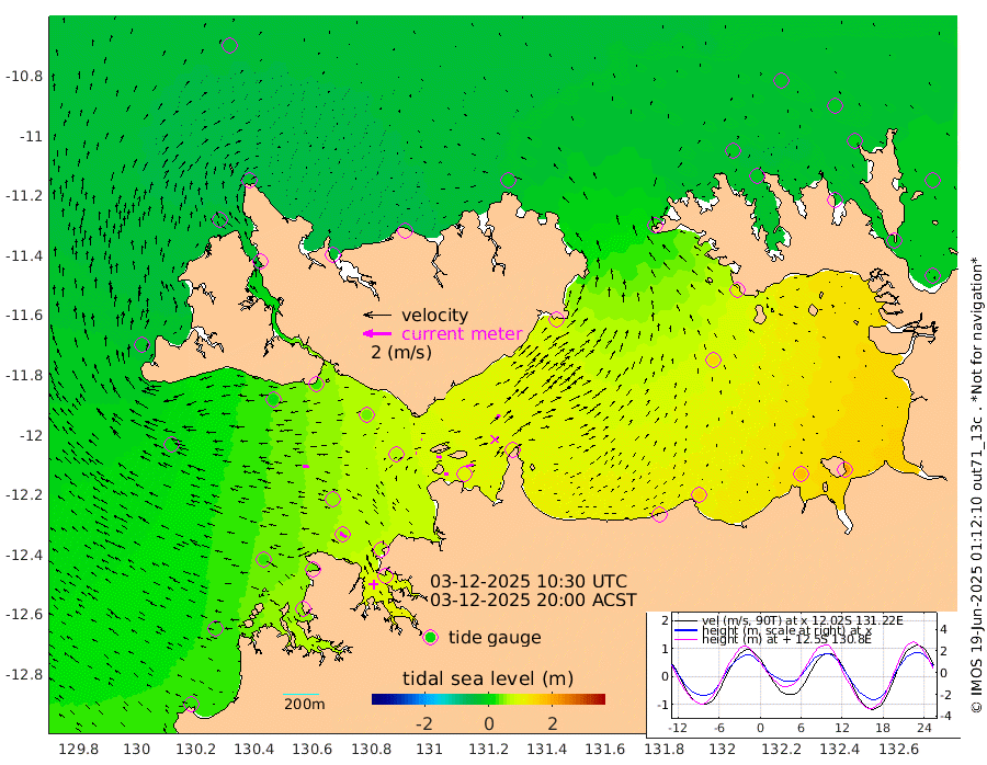 28cm/s 81T +4cm/s rms + 6cm/s 51T. Darwin_C1 52m 53cm/s 89T +4cm/s rms + 7cm/s -161T. Darwin_CW1 22m 5cm/s 70T +4cm/s rms + 8cm/s 61T. Darwin_CW2 34m 41cm/s 37T +3cm/s rms + 9cm/s 98T. Darwin_CW3 22m 34cm/s 95T +5cm/s rms + 7cm/s 88T. Darwin_C3 56m 6cm/s 77T +2cm/s rms + 9cm/s -126T. Darwin_CTbW 22m 44cm/s -81T +1cm/s rms + 1cm/s -47T. DARBGF 30m 56cm/s -54T +4cm/s rms + 3cm/s 80T. NRSDAR 19m -24cm Goodrich Bank 27cm Point Jenny 24cm Native Point 29cm Fish Reef 39cm Tapa Bay -13cm Point Fawcett (Offshore) 51cm Burge Point 9cm Munkunuwa 20cm Beagle A 40cm Parsons Bank 53cm Fenton Patches 65cm Hancox Shoal Area 64cm Nightcliff 69cm Darwin 56cm Charles Point Patches 94cm Glyde Point 146cm Chambers Bay 153cm Point Stuart 102cm Cape Hotham 140cm Christine Reef 173cm West Alligator Head 204cm East Field Island 108cm Two Hills Bay 115cm Camp Point 33cm Medina Inlet South -26cm South Barlow Point -24cm St. Asaph Bay -31cm Cape Van Dieman -32cm Snake Bay -20cm Cache Point -6cm Point Jahleel (Off) 24cm Cape Don -11cm Port Essington -13cm Smith Point - West -11cm NW Peacock Island -13cm North Of Jones Shoal -5cm Peacock Island -5cm Point David -15cm D'urville Point -1cm Copeland Island -2cm One Tree Point