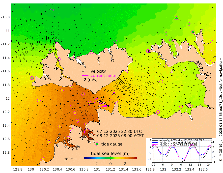 199cm/s 78T +4cm/s rms + 6cm/s 51T. Darwin_C1 52m 138cm/s 91T +4cm/s rms + 7cm/s -161T. Darwin_CW1 22m 83cm/s 73T +4cm/s rms + 8cm/s 61T. Darwin_CW2 34m 114cm/s 43T +3cm/s rms + 9cm/s 98T. Darwin_CW3 22m 127cm/s 89T +5cm/s rms + 7cm/s 88T. Darwin_C3 56m 97cm/s 65T +2cm/s rms + 9cm/s -126T. Darwin_CTbW 22m 19cm/s 77T +1cm/s rms + 1cm/s -47T. DARBGF 30m 16cm/s 91T +4cm/s rms + 3cm/s 80T. NRSDAR 19m -24cm Goodrich Bank 142cm Point Jenny 140cm Native Point 161cm Fish Reef 170cm Tapa Bay 54cm Point Fawcett (Offshore) 187cm Burge Point 160cm Munkunuwa 110cm Beagle A 203cm Parsons Bank 173cm Fenton Patches 194cm Hancox Shoal Area 187cm Nightcliff 219cm Darwin 192cm Charles Point Patches 160cm Glyde Point 117cm Chambers Bay 126cm Point Stuart 141cm Cape Hotham 105cm Christine Reef 130cm West Alligator Head 112cm East Field Island 115cm Two Hills Bay 107cm Camp Point 170cm Medina Inlet South 48cm South Barlow Point 10cm St. Asaph Bay -17cm Cape Van Dieman -6cm Snake Bay -12cm Cache Point 10cm Point Jahleel (Off) 70cm Cape Don 40cm Port Essington 37cm Smith Point - West 40cm NW Peacock Island 10cm North Of Jones Shoal 8cm Peacock Island 87cm Point David 50cm D'urville Point 92cm Copeland Island 77cm One Tree Point