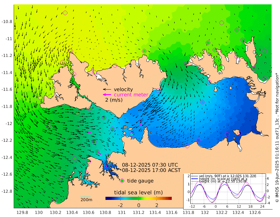 29cm/s -102T +4cm/s rms + 6cm/s 51T. Darwin_C1 52m 35cm/s -93T +4cm/s rms + 7cm/s -161T. Darwin_CW1 22m 3cm/s 63T +4cm/s rms + 8cm/s 61T. Darwin_CW2 34m 72cm/s -144T +3cm/s rms + 9cm/s 98T. Darwin_CW3 22m 37cm/s -87T +5cm/s rms + 7cm/s 88T. Darwin_C3 56m 2cm/s 39T +2cm/s rms + 9cm/s -126T. Darwin_CTbW 22m 74cm/s 96T +1cm/s rms + 1cm/s -47T. DARBGF 30m 82cm/s 126T +4cm/s rms + 3cm/s 80T. NRSDAR 19m 69cm Goodrich Bank -3cm Point Jenny 0cm Native Point -10cm Fish Reef -22cm Tapa Bay 60cm Point Fawcett (Offshore) -45cm Burge Point 13cm Munkunuwa 21cm Beagle A -49cm Parsons Bank -34cm Fenton Patches -70cm Hancox Shoal Area -52cm Nightcliff -76cm Darwin -46cm Charles Point Patches -124cm Glyde Point -205cm Chambers Bay -228cm Point Stuart -143cm Cape Hotham -185cm Christine Reef -254cm West Alligator Head -294cm East Field Island -159cm Two Hills Bay -158cm Camp Point -16cm Medina Inlet South 70cm South Barlow Point 81cm St. Asaph Bay 74cm Cape Van Dieman 69cm Snake Bay 58cm Cache Point 33cm Point Jahleel (Off) -35cm Cape Don 16cm Port Essington 24cm Smith Point - West 13cm NW Peacock Island 34cm North Of Jones Shoal 9cm Peacock Island -35cm Point David 14cm D'urville Point -41cm Copeland Island -29cm One Tree Point