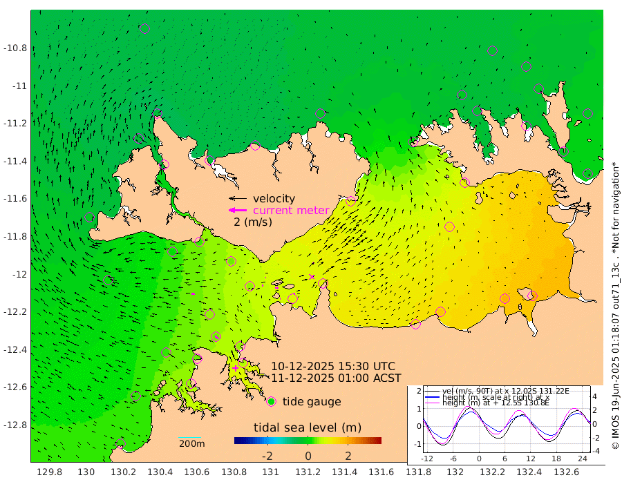 4cm/s 80T +4cm/s rms + 6cm/s 51T. Darwin_C1 52m 11cm/s 87T +4cm/s rms + 7cm/s -161T. Darwin_CW1 22m 10cm/s 79T +4cm/s rms + 8cm/s 61T. Darwin_CW2 34m 25cm/s 34T +3cm/s rms + 9cm/s 98T. Darwin_CW3 22m 35cm/s 93T +5cm/s rms + 7cm/s 88T. Darwin_C3 56m 4cm/s 86T +2cm/s rms + 9cm/s -126T. Darwin_CTbW 22m 39cm/s -82T +1cm/s rms + 1cm/s -47T. DARBGF 30m 44cm/s -52T +4cm/s rms + 3cm/s 80T. NRSDAR 19m -36cm Goodrich Bank 26cm Point Jenny 26cm Native Point 30cm Fish Reef 35cm Tapa Bay -19cm Point Fawcett (Offshore) 53cm Burge Point 16cm Munkunuwa 15cm Beagle A 40cm Parsons Bank 48cm Fenton Patches 52cm Hancox Shoal Area 50cm Nightcliff 61cm Darwin 39cm Charles Point Patches 92cm Glyde Point 146cm Chambers Bay 160cm Point Stuart 100cm Cape Hotham 133cm Christine Reef 182cm West Alligator Head 210cm East Field Island 111cm Two Hills Bay 109cm Camp Point 30cm Medina Inlet South -34cm South Barlow Point -37cm St. Asaph Bay -41cm Cape Van Dieman -41cm Snake Bay -31cm Cache Point -17cm Point Jahleel (Off) 20cm Cape Don -22cm Port Essington -27cm Smith Point - West -25cm NW Peacock Island -33cm North Of Jones Shoal -12cm Peacock Island -13cm Point David -28cm D'urville Point -12cm Copeland Island -13cm One Tree Point