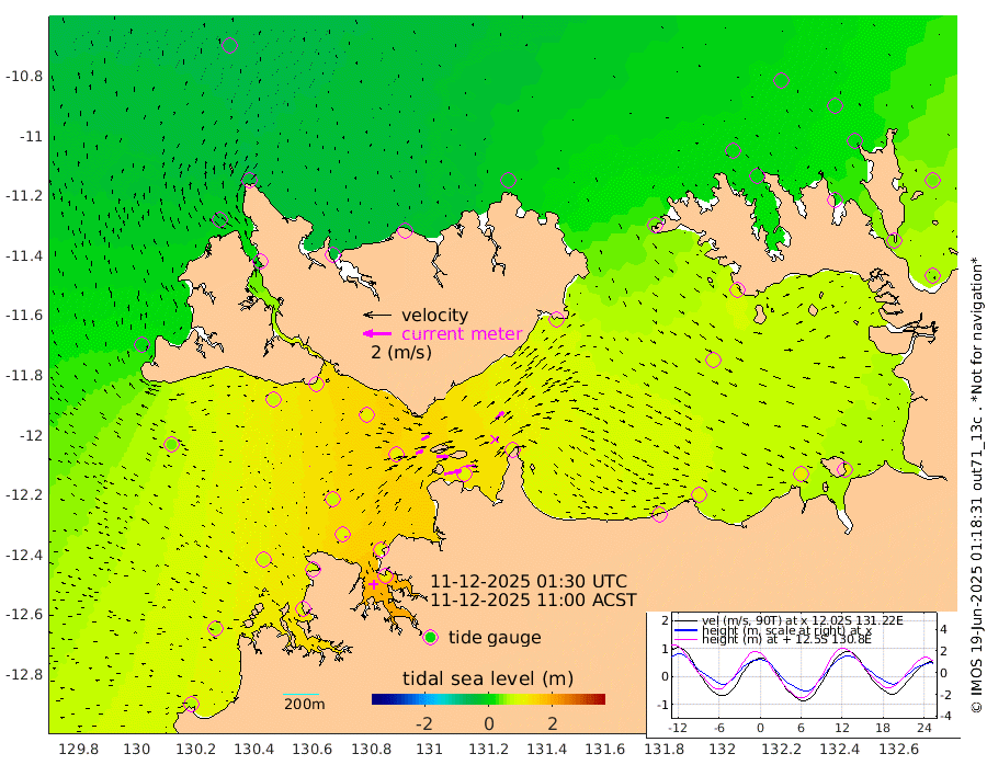 121cm/s 79T +4cm/s rms + 6cm/s 51T. Darwin_C1 52m 68cm/s 93T +4cm/s rms + 7cm/s -161T. Darwin_CW1 22m 53cm/s 71T +4cm/s rms + 8cm/s 61T. Darwin_CW2 34m 71cm/s 45T +3cm/s rms + 9cm/s 98T. Darwin_CW3 22m 80cm/s 89T +5cm/s rms + 7cm/s 88T. Darwin_C3 56m 59cm/s 65T +2cm/s rms + 9cm/s -126T. Darwin_CTbW 22m 3cm/s 0T +1cm/s rms + 1cm/s -47T. DARBGF 30m 11cm/s -33T +4cm/s rms + 3cm/s 80T. NRSDAR 19m -46cm Goodrich Bank 63cm Point Jenny 58cm Native Point 78cm Fish Reef 82cm Tapa Bay 9cm Point Fawcett (Offshore) 88cm Burge Point 74cm Munkunuwa 34cm Beagle A 108cm Parsons Bank 76cm Fenton Patches 108cm Hancox Shoal Area 99cm Nightcliff 116cm Darwin 94cm Charles Point Patches 98cm Glyde Point 106cm Chambers Bay 112cm Point Stuart 99cm Cape Hotham 85cm Christine Reef 121cm West Alligator Head 115cm East Field Island 93cm Two Hills Bay 74cm Camp Point 81cm Medina Inlet South -4cm South Barlow Point -25cm St. Asaph Bay -42cm Cape Van Dieman -35cm Snake Bay -33cm Cache Point -13cm Point Jahleel (Off) 38cm Cape Don 9cm Port Essington 8cm Smith Point - West 11cm NW Peacock Island -7cm North Of Jones Shoal 1cm Peacock Island 50cm Point David 18cm D'urville Point 56cm Copeland Island 45cm One Tree Point
