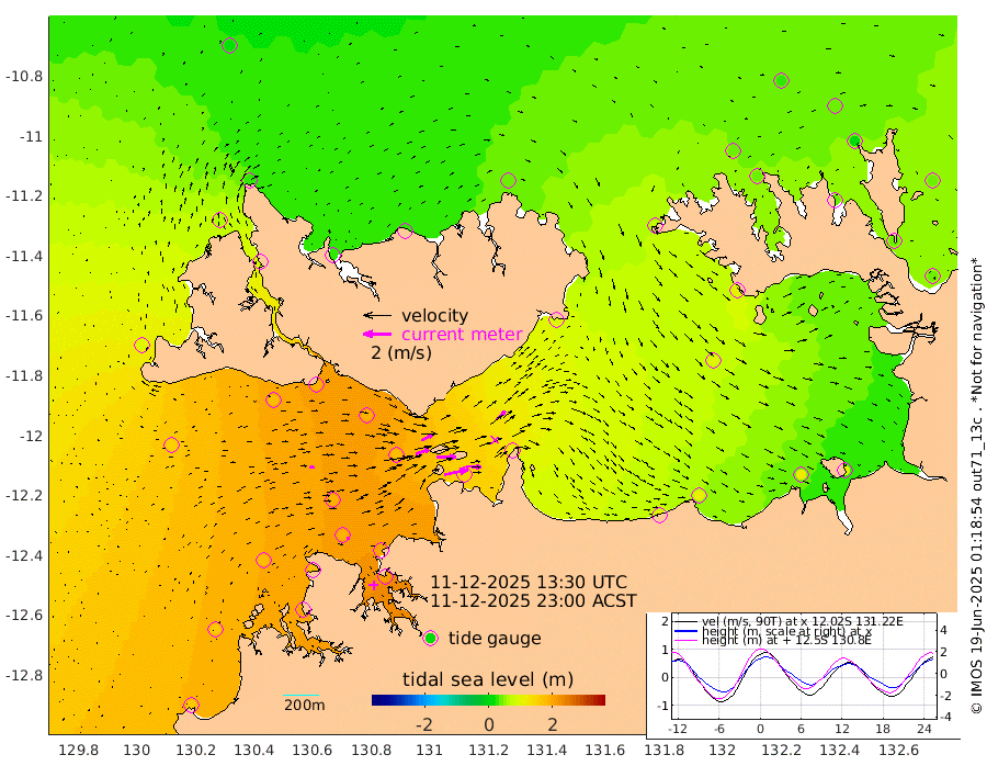 171cm/s 78T +4cm/s rms + 6cm/s 51T. Darwin_C1 52m 108cm/s 93T +4cm/s rms + 7cm/s -161T. Darwin_CW1 22m 97cm/s 72T +4cm/s rms + 8cm/s 61T. Darwin_CW2 34m 88cm/s 48T +3cm/s rms + 9cm/s 98T. Darwin_CW3 22m 143cm/s 89T +5cm/s rms + 7cm/s 88T. Darwin_C3 56m 90cm/s 65T +2cm/s rms + 9cm/s -126T. Darwin_CTbW 22m 32cm/s 80T +1cm/s rms + 1cm/s -47T. DARBGF 30m 23cm/s 104T +4cm/s rms + 3cm/s 80T. NRSDAR 19m 21cm Goodrich Bank 162cm Point Jenny 162cm Native Point 179cm Fish Reef 180cm Tapa Bay 99cm Point Fawcett (Offshore) 192cm Burge Point 175cm Munkunuwa 148cm Beagle A 188cm Parsons Bank 187cm Fenton Patches 178cm Hancox Shoal Area 191cm Nightcliff 206cm Darwin 187cm Charles Point Patches 148cm Glyde Point 111cm Chambers Bay 107cm Point Stuart 124cm Cape Hotham 101cm Christine Reef 115cm West Alligator Head 98cm East Field Island 105cm Two Hills Bay 93cm Camp Point 183cm Medina Inlet South 85cm South Barlow Point 59cm St. Asaph Bay 24cm Cape Van Dieman 31cm Snake Bay 28cm Cache Point 40cm Point Jahleel (Off) 72cm Cape Don 41cm Port Essington 43cm Smith Point - West 36cm NW Peacock Island 25cm North Of Jones Shoal 10cm Peacock Island 36cm Point David 41cm D'urville Point 36cm Copeland Island 40cm One Tree Point