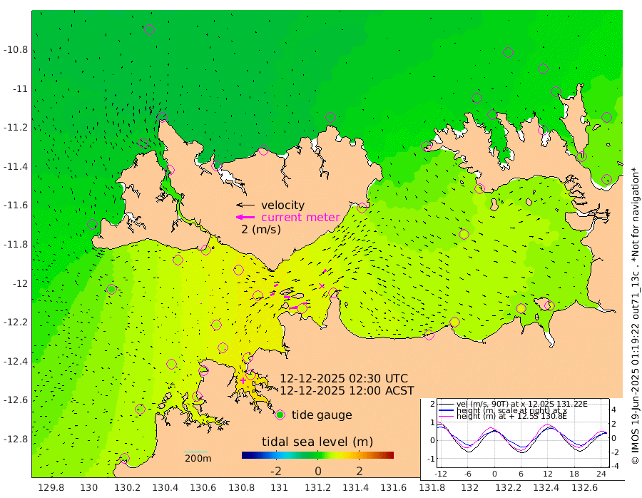 89cm/s 79T +4cm/s rms + 6cm/s 51T. Darwin_C1 52m 46cm/s 92T +4cm/s rms + 7cm/s -161T. Darwin_CW1 22m 44cm/s 71T +4cm/s rms + 8cm/s 61T. Darwin_CW2 34m 50cm/s 47T +3cm/s rms + 9cm/s 98T. Darwin_CW3 22m 66cm/s 89T +5cm/s rms + 7cm/s 88T. Darwin_C3 56m 45cm/s 65T +2cm/s rms + 9cm/s -126T. Darwin_CTbW 22m 3cm/s 37T +1cm/s rms + 1cm/s -47T. DARBGF 30m 9cm/s -33T +4cm/s rms + 3cm/s 80T. NRSDAR 19m -42cm Goodrich Bank 50cm Point Jenny 45cm Native Point 63cm Fish Reef 65cm Tapa Bay 9cm Point Fawcett (Offshore) 66cm Burge Point 58cm Munkunuwa 24cm Beagle A 83cm Parsons Bank 57cm Fenton Patches 85cm Hancox Shoal Area 79cm Nightcliff 89cm Darwin 71cm Charles Point Patches 77cm Glyde Point 92cm Chambers Bay 95cm Point Stuart 82cm Cape Hotham 70cm Christine Reef 103cm West Alligator Head 98cm East Field Island 78cm Two Hills Bay 58cm Camp Point 63cm Medina Inlet South -8cm South Barlow Point -22cm St. Asaph Bay -38cm Cape Van Dieman -34cm Snake Bay -29cm Cache Point -13cm Point Jahleel (Off) 29cm Cape Don 4cm Port Essington 4cm Smith Point - West 5cm NW Peacock Island -6cm North Of Jones Shoal 1cm Peacock Island 37cm Point David 11cm D'urville Point 42cm Copeland Island 34cm One Tree Point