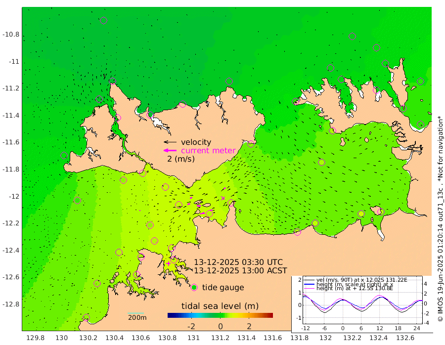 68cm/s 80T +4cm/s rms + 6cm/s 51T. Darwin_C1 52m 36cm/s 90T +4cm/s rms + 7cm/s -161T. Darwin_CW1 22m 40cm/s 72T +4cm/s rms + 8cm/s 61T. Darwin_CW2 34m 34cm/s 49T +3cm/s rms + 9cm/s 98T. Darwin_CW3 22m 60cm/s 88T +5cm/s rms + 7cm/s 88T. Darwin_C3 56m 36cm/s 65T +2cm/s rms + 9cm/s -126T. Darwin_CTbW 22m 8cm/s 76T +1cm/s rms + 1cm/s -47T. DARBGF 30m 3cm/s 23T +4cm/s rms + 3cm/s 80T. NRSDAR 19m -33cm Goodrich Bank 51cm Point Jenny 45cm Native Point 61cm Fish Reef 61cm Tapa Bay 18cm Point Fawcett (Offshore) 59cm Burge Point 56cm Munkunuwa 28cm Beagle A 72cm Parsons Bank 53cm Fenton Patches 74cm Hancox Shoal Area 73cm Nightcliff 76cm Darwin 62cm Charles Point Patches 65cm Glyde Point 78cm Chambers Bay 78cm Point Stuart 69cm Cape Hotham 57cm Christine Reef 85cm West Alligator Head 78cm East Field Island 65cm Two Hills Bay 46cm Camp Point 58cm Medina Inlet South -2cm South Barlow Point -12cm St. Asaph Bay -29cm Cape Van Dieman -27cm Snake Bay -21cm Cache Point -8cm Point Jahleel (Off) 24cm Cape Don 3cm Port Essington 4cm Smith Point - West 3cm NW Peacock Island -3cm North Of Jones Shoal 1cm Peacock Island 26cm Point David 8cm D'urville Point 31cm Copeland Island 25cm One Tree Point