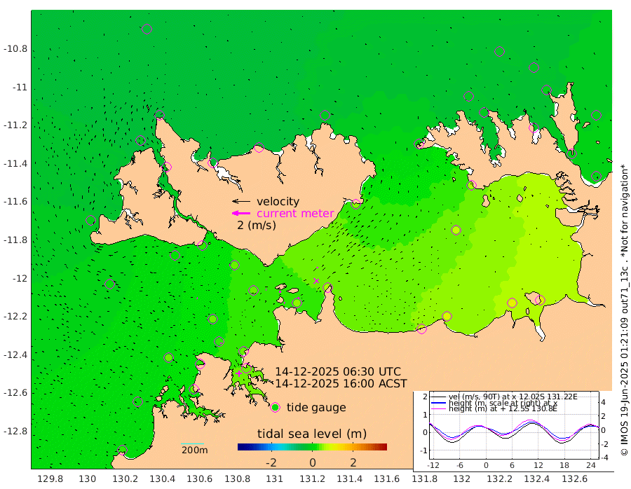 6cm/s 94T +4cm/s rms + 6cm/s 51T. Darwin_C1 52m 13cm/s 96T +4cm/s rms + 7cm/s -161T. Darwin_CW1 22m 6cm/s 86T +4cm/s rms + 8cm/s 61T. Darwin_CW2 34m 12cm/s 18T +3cm/s rms + 9cm/s 98T. Darwin_CW3 22m 21cm/s 92T +5cm/s rms + 7cm/s 88T. Darwin_C3 56m 1cm/s 168T +2cm/s rms + 9cm/s -126T. Darwin_CTbW 22m 10cm/s -75T +1cm/s rms + 1cm/s -47T. DARBGF 30m 11cm/s -57T +4cm/s rms + 3cm/s 80T. NRSDAR 19m -34cm Goodrich Bank 28cm Point Jenny 22cm Native Point 36cm Fish Reef 31cm Tapa Bay -1cm Point Fawcett (Offshore) 42cm Burge Point 22cm Munkunuwa 20cm Beagle A 34cm Parsons Bank 39cm Fenton Patches 43cm Hancox Shoal Area 44cm Nightcliff 43cm Darwin 32cm Charles Point Patches 56cm Glyde Point 84cm Chambers Bay 93cm Point Stuart 66cm Cape Hotham 72cm Christine Reef 105cm West Alligator Head 116cm East Field Island 65cm Two Hills Bay 56cm Camp Point 27cm Medina Inlet South -22cm South Barlow Point -21cm St. Asaph Bay -34cm Cape Van Dieman -38cm Snake Bay -24cm Cache Point -15cm Point Jahleel (Off) 9cm Cape Don -16cm Port Essington -16cm Smith Point - West -17cm NW Peacock Island -18cm North Of Jones Shoal -6cm Peacock Island -7cm Point David -16cm D'urville Point -2cm Copeland Island -6cm One Tree Point