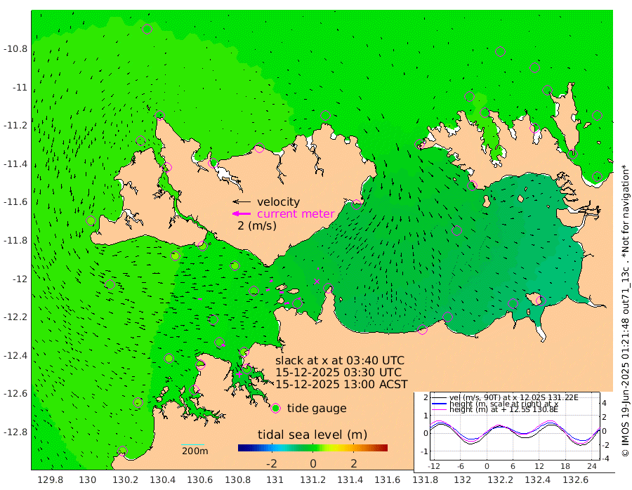 47cm/s 78T +4cm/s rms + 6cm/s 51T. Darwin_C1 52m 21cm/s 90T +4cm/s rms + 7cm/s -161T. Darwin_CW1 22m 37cm/s 74T +4cm/s rms + 8cm/s 61T. Darwin_CW2 34m 8cm/s 93T +3cm/s rms + 9cm/s 98T. Darwin_CW3 22m 45cm/s 86T +5cm/s rms + 7cm/s 88T. Darwin_C3 56m 34cm/s 65T +2cm/s rms + 9cm/s -126T. Darwin_CTbW 22m 39cm/s 93T +1cm/s rms + 1cm/s -47T. DARBGF 30m 38cm/s 120T +4cm/s rms + 3cm/s 80T. NRSDAR 19m 12cm Goodrich Bank 41cm Point Jenny 39cm Native Point 37cm Fish Reef 45cm Tapa Bay 44cm Point Fawcett (Offshore) 21cm Burge Point 49cm Munkunuwa 27cm Beagle A 35cm Parsons Bank 21cm Fenton Patches 33cm Hancox Shoal Area 39cm Nightcliff 27cm Darwin 32cm Charles Point Patches -6cm Glyde Point -28cm Chambers Bay -47cm Point Stuart -13cm Cape Hotham -37cm Christine Reef -53cm West Alligator Head -78cm East Field Island -22cm Two Hills Bay -32cm Camp Point 39cm Medina Inlet South 34cm South Barlow Point 32cm St. Asaph Bay 17cm Cape Van Dieman 18cm Snake Bay 15cm Cache Point 13cm Point Jahleel (Off) 7cm Cape Don 14cm Port Essington 20cm Smith Point - West 15cm NW Peacock Island 19cm North Of Jones Shoal 7cm Peacock Island 15cm Point David 19cm D'urville Point 15cm Copeland Island 14cm One Tree Point