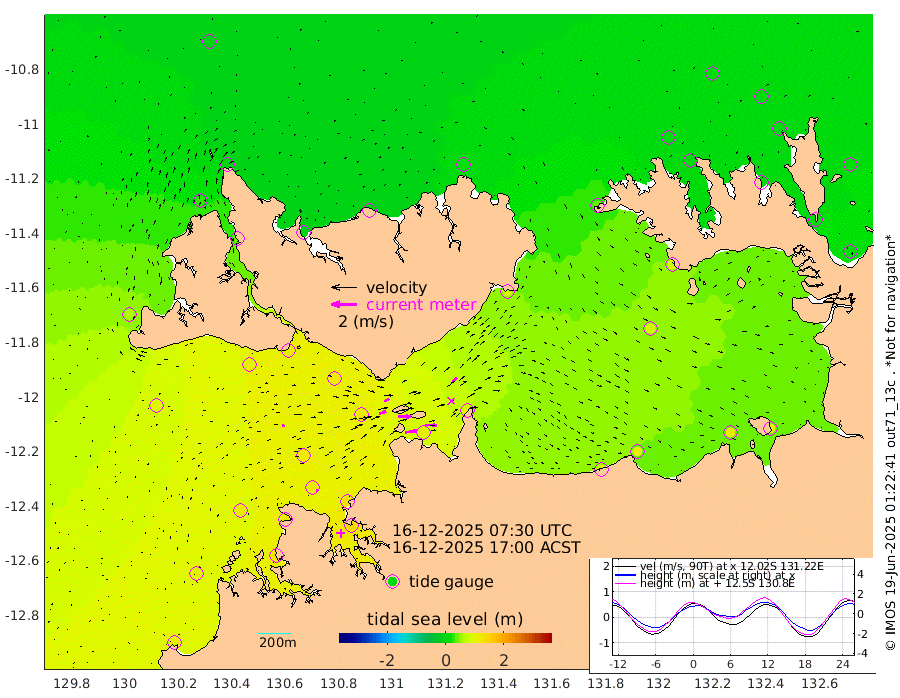 93cm/s 79T +4cm/s rms + 6cm/s 51T. Darwin_C1 52m 89cm/s 93T +4cm/s rms + 7cm/s -161T. Darwin_CW1 22m 55cm/s 73T +4cm/s rms + 8cm/s 61T. Darwin_CW2 34m 49cm/s 44T +3cm/s rms + 9cm/s 98T. Darwin_CW3 22m 97cm/s 90T +5cm/s rms + 7cm/s 88T. Darwin_C3 56m 44cm/s 66T +2cm/s rms + 9cm/s -126T. Darwin_CTbW 22m 16cm/s 74T +1cm/s rms + 1cm/s -47T. DARBGF 30m 9cm/s 103T +4cm/s rms + 3cm/s 80T. NRSDAR 19m -6cm Goodrich Bank 108cm Point Jenny 104cm Native Point 121cm Fish Reef 121cm Tapa Bay 63cm Point Fawcett (Offshore) 127cm Burge Point 110cm Munkunuwa 93cm Beagle A 117cm Parsons Bank 123cm Fenton Patches 122cm Hancox Shoal Area 132cm Nightcliff 136cm Darwin 123cm Charles Point Patches 109cm Glyde Point 103cm Chambers Bay 105cm Point Stuart 103cm Cape Hotham 89cm Christine Reef 115cm West Alligator Head 112cm East Field Island 88cm Two Hills Bay 80cm Camp Point 117cm Medina Inlet South 35cm South Barlow Point 27cm St. Asaph Bay -4cm Cape Van Dieman -4cm Snake Bay 4cm Cache Point 14cm Point Jahleel (Off) 40cm Cape Don 10cm Port Essington 11cm Smith Point - West 5cm NW Peacock Island 5cm North Of Jones Shoal 2cm Peacock Island 10cm Point David 7cm D'urville Point 12cm Copeland Island 13cm One Tree Point