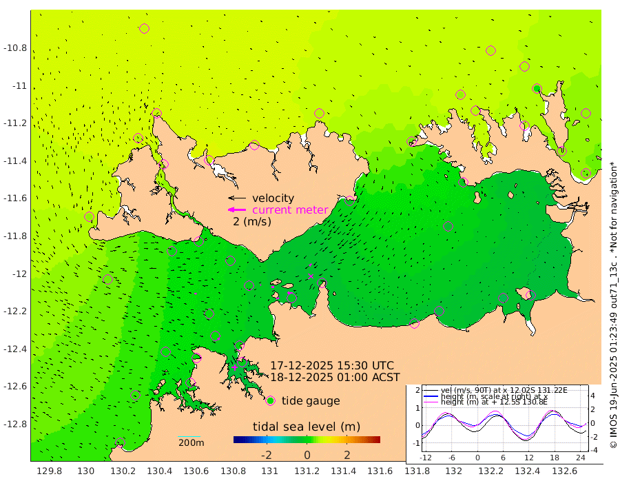 34cm/s -100T +4cm/s rms + 6cm/s 51T. Darwin_C1 52m 53cm/s -91T +4cm/s rms + 7cm/s -161T. Darwin_CW1 22m 6cm/s -106T +4cm/s rms + 8cm/s 61T. Darwin_CW2 34m 34cm/s -136T +3cm/s rms + 9cm/s 98T. Darwin_CW3 22m 27cm/s -91T +5cm/s rms + 7cm/s 88T. Darwin_C3 56m 1cm/s -76T +2cm/s rms + 9cm/s -126T. Darwin_CTbW 22m 23cm/s 97T +1cm/s rms + 1cm/s -47T. DARBGF 30m 23cm/s 131T +4cm/s rms + 3cm/s 80T. NRSDAR 19m 72cm Goodrich Bank 24cm Point Jenny 27cm Native Point 14cm Fish Reef 14cm Tapa Bay 55cm Point Fawcett (Offshore) 11cm Burge Point 10cm Munkunuwa 38cm Beagle A 5cm Parsons Bank 13cm Fenton Patches -1cm Hancox Shoal Area 9cm Nightcliff -1cm Darwin 12cm Charles Point Patches -14cm Glyde Point -38cm Chambers Bay -51cm Point Stuart -20cm Cape Hotham -28cm Christine Reef -62cm West Alligator Head -72cm East Field Island -21cm Two Hills Bay -15cm Camp Point 16cm Medina Inlet South 64cm South Barlow Point 66cm St. Asaph Bay 73cm Cape Van Dieman 78cm Snake Bay 70cm Cache Point 58cm Point Jahleel (Off) 34cm Cape Don 55cm Port Essington 57cm Smith Point - West 58cm NW Peacock Island 65cm North Of Jones Shoal 22cm Peacock Island 47cm Point David 57cm D'urville Point 42cm Copeland Island 49cm One Tree Point