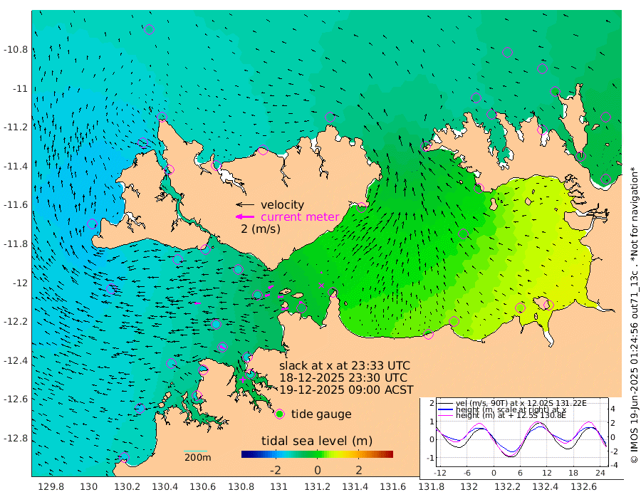 77cm/s -103T +4cm/s rms + 6cm/s 51T. Darwin_C1 52m 31cm/s -86T +4cm/s rms + 7cm/s -161T. Darwin_CW1 22m 57cm/s -107T +4cm/s rms + 8cm/s 61T. Darwin_CW2 34m 14cm/s -105T +3cm/s rms + 9cm/s 98T. Darwin_CW3 22m 62cm/s -93T +5cm/s rms + 7cm/s 88T. Darwin_C3 56m 59cm/s -116T +2cm/s rms + 9cm/s -126T. Darwin_CTbW 22m 64cm/s -90T +1cm/s rms + 1cm/s -47T. DARBGF 30m 63cm/s -57T +4cm/s rms + 3cm/s 80T. NRSDAR 19m -111cm Goodrich Bank -157cm Point Jenny -159cm Native Point -144cm Fish Reef -155cm Tapa Bay -154cm Point Fawcett (Offshore) -141cm Burge Point -144cm Munkunuwa -161cm Beagle A -125cm Parsons Bank -146cm Fenton Patches -119cm Hancox Shoal Area -144cm Nightcliff -126cm Darwin -143cm Charles Point Patches -60cm Glyde Point 9cm Chambers Bay 38cm Point Stuart -30cm Cape Hotham -2cm Christine Reef 52cm West Alligator Head 83cm East Field Island -6cm Two Hills Bay -15cm Camp Point -145cm Medina Inlet South -144cm South Barlow Point -141cm St. Asaph Bay -115cm Cape Van Dieman -117cm Snake Bay -111cm Cache Point -98cm Point Jahleel (Off) -72cm Cape Don -84cm Port Essington -91cm Smith Point - West -83cm NW Peacock Island -91cm North Of Jones Shoal -30cm Peacock Island -56cm Point David -84cm D'urville Point -49cm Copeland Island -59cm One Tree Point