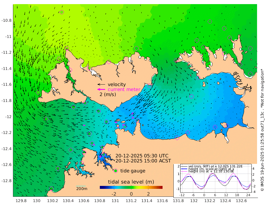 41cm/s -100T +4cm/s rms + 6cm/s 51T. Darwin_C1 52m 66cm/s -93T +4cm/s rms + 7cm/s -161T. Darwin_CW1 22m 7cm/s -97T +4cm/s rms + 8cm/s 61T. Darwin_CW2 34m 67cm/s -142T +3cm/s rms + 9cm/s 98T. Darwin_CW3 22m 55cm/s -89T +5cm/s rms + 7cm/s 88T. Darwin_C3 56m 1cm/s -75T +2cm/s rms + 9cm/s -126T. Darwin_CTbW 22m 55cm/s 97T +1cm/s rms + 1cm/s -47T. DARBGF 30m 63cm/s 127T +4cm/s rms + 3cm/s 80T. NRSDAR 19m 45cm Goodrich Bank -10cm Point Jenny -8cm Native Point -31cm Fish Reef -32cm Tapa Bay 28cm Point Fawcett (Offshore) -51cm Burge Point -11cm Munkunuwa 5cm Beagle A -55cm Parsons Bank -40cm Fenton Patches -66cm Hancox Shoal Area -55cm Nightcliff -88cm Darwin -62cm Charles Point Patches -112cm Glyde Point -160cm Chambers Bay -187cm Point Stuart -127cm Cape Hotham -135cm Christine Reef -207cm West Alligator Head -236cm East Field Island -135cm Two Hills Bay -130cm Camp Point -38cm Medina Inlet South 39cm South Barlow Point 50cm St. Asaph Bay 49cm Cape Van Dieman 38cm Snake Bay 38cm Cache Point 17cm Point Jahleel (Off) -34cm Cape Don 4cm Port Essington 15cm Smith Point - West 7cm NW Peacock Island 16cm North Of Jones Shoal 4cm Peacock Island -32cm Point David 8cm D'urville Point -35cm Copeland Island -31cm One Tree Point