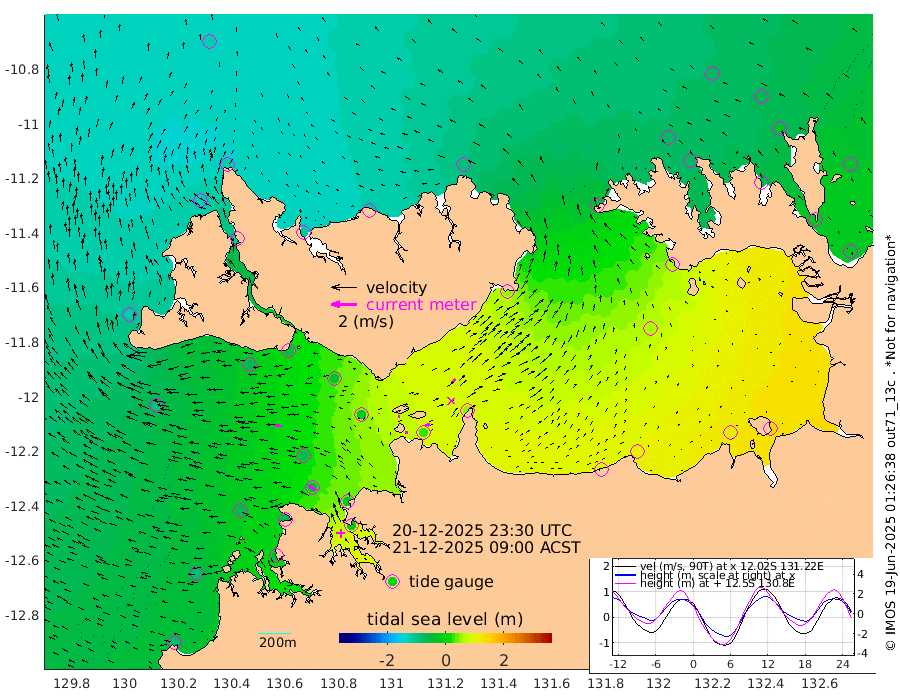 21cm/s 86T +4cm/s rms + 6cm/s 51T. Darwin_C1 52m 38cm/s 89T +4cm/s rms + 7cm/s -161T. Darwin_CW1 22m 5cm/s 3T +4cm/s rms + 8cm/s 61T. Darwin_CW2 34m 36cm/s 41T +3cm/s rms + 9cm/s 98T. Darwin_CW3 22m 16cm/s 93T +5cm/s rms + 7cm/s 88T. Darwin_C3 56m 1cm/s 102T +2cm/s rms + 9cm/s -126T. Darwin_CTbW 22m 54cm/s -86T +1cm/s rms + 1cm/s -47T. DARBGF 30m 67cm/s -55T +4cm/s rms + 3cm/s 80T. NRSDAR 19m -117cm Goodrich Bank -82cm Point Jenny -85cm Native Point -62cm Fish Reef -63cm Tapa Bay -116cm Point Fawcett (Offshore) -51cm Burge Point -64cm Munkunuwa -100cm Beagle A -28cm Parsons Bank -58cm Fenton Patches -19cm Hancox Shoal Area -33cm Nightcliff -15cm Darwin -46cm Charles Point Patches 23cm Glyde Point 81cm Chambers Bay 106cm Point Stuart 45cm Cape Hotham 58cm Christine Reef 124cm West Alligator Head 148cm East Field Island 57cm Two Hills Bay 46cm Camp Point -56cm Medina Inlet South -115cm South Barlow Point -125cm St. Asaph Bay -119cm Cape Van Dieman -112cm Snake Bay -112cm Cache Point -87cm Point Jahleel (Off) -37cm Cape Don -68cm Port Essington -75cm Smith Point - West -67cm NW Peacock Island -78cm North Of Jones Shoal -24cm Peacock Island -21cm Point David -65cm D'urville Point -13cm Copeland Island -25cm One Tree Point