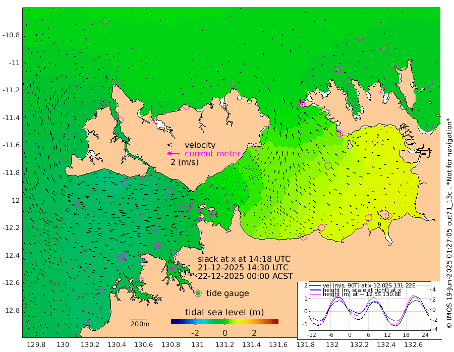 118cm/s -103T +4cm/s rms + 6cm/s 51T. Darwin_C1 52m 66cm/s -88T +4cm/s rms + 7cm/s -161T. Darwin_CW1 22m 60cm/s -111T +4cm/s rms + 8cm/s 61T. Darwin_CW2 34m 38cm/s -119T +3cm/s rms + 9cm/s 98T. Darwin_CW3 22m 46cm/s -93T +5cm/s rms + 7cm/s 88T. Darwin_C3 56m 72cm/s -116T +2cm/s rms + 9cm/s -126T. Darwin_CTbW 22m 48cm/s -88T +1cm/s rms + 1cm/s -47T. DARBGF 30m 43cm/s -61T +4cm/s rms + 3cm/s 80T. NRSDAR 19m 16cm Goodrich Bank -63cm Point Jenny -63cm Native Point -62cm Fish Reef -70cm Tapa Bay -28cm Point Fawcett (Offshore) -68cm Burge Point -86cm Munkunuwa -52cm Beagle A -77cm Parsons Bank -67cm Fenton Patches -65cm Hancox Shoal Area -80cm Nightcliff -65cm Darwin -58cm Charles Point Patches -6cm Glyde Point 55cm Chambers Bay 70cm Point Stuart 15cm Cape Hotham 47cm Christine Reef 81cm West Alligator Head 114cm East Field Island 42cm Two Hills Bay 41cm Camp Point -68cm Medina Inlet South -34cm South Barlow Point -15cm St. Asaph Bay 8cm Cape Van Dieman 5cm Snake Bay 16cm Cache Point 11cm Point Jahleel (Off) 7cm Cape Don 5cm Port Essington -2cm Smith Point - West 2cm NW Peacock Island 9cm North Of Jones Shoal 1cm Peacock Island -6cm Point David -5cm D'urville Point -8cm Copeland Island 0cm One Tree Point