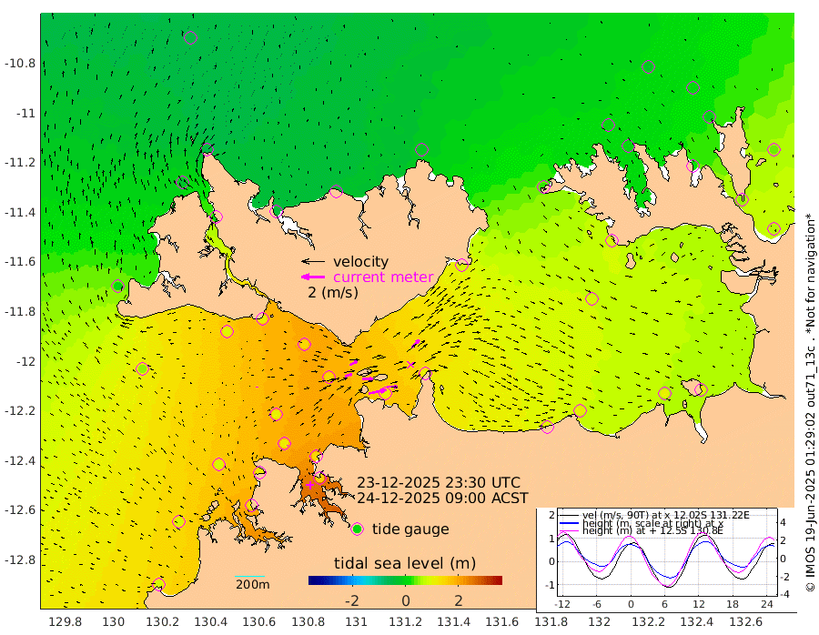 152cm/s 78T +4cm/s rms + 6cm/s 51T. Darwin_C1 52m 93cm/s 92T +4cm/s rms + 7cm/s -161T. Darwin_CW1 22m 62cm/s 72T +4cm/s rms + 8cm/s 61T. Darwin_CW2 34m 97cm/s 43T +3cm/s rms + 9cm/s 98T. Darwin_CW3 22m 94cm/s 89T +5cm/s rms + 7cm/s 88T. Darwin_C3 56m 71cm/s 65T +2cm/s rms + 9cm/s -126T. Darwin_CTbW 22m 4cm/s 12T +1cm/s rms + 1cm/s -47T. DARBGF 30m 8cm/s 7T +4cm/s rms + 3cm/s 80T. NRSDAR 19m -50cm Goodrich Bank 82cm Point Jenny 81cm Native Point 88cm Fish Reef 113cm Tapa Bay 4cm Point Fawcett (Offshore) 115cm Burge Point 99cm Munkunuwa 49cm Beagle A 136cm Parsons Bank 107cm Fenton Patches 142cm Hancox Shoal Area 138cm Nightcliff 150cm Darwin 123cm Charles Point Patches 115cm Glyde Point 105cm Chambers Bay 105cm Point Stuart 105cm Cape Hotham 89cm Christine Reef 112cm West Alligator Head 104cm East Field Island 86cm Two Hills Bay 86cm Camp Point 103cm Medina Inlet South 1cm South Barlow Point -27cm St. Asaph Bay -46cm Cape Van Dieman -35cm Snake Bay -44cm Cache Point -19cm Point Jahleel (Off) 31cm Cape Don 0cm Port Essington 0cm Smith Point - West 4cm NW Peacock Island -20cm North Of Jones Shoal -3cm Peacock Island 54cm Point David 13cm D'urville Point 59cm Copeland Island 41cm One Tree Point