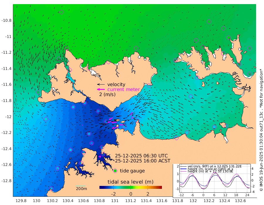 185cm/s -102T +4cm/s rms + 6cm/s 51T. Darwin_C1 52m 126cm/s -90T +4cm/s rms + 7cm/s -161T. Darwin_CW1 22m 88cm/s -106T +4cm/s rms + 8cm/s 61T. Darwin_CW2 34m 99cm/s -135T +3cm/s rms + 9cm/s 98T. Darwin_CW3 22m 138cm/s -90T +5cm/s rms + 7cm/s 88T. Darwin_C3 56m 104cm/s -115T +2cm/s rms + 9cm/s -126T. Darwin_CTbW 22m 13cm/s -120T +1cm/s rms + 1cm/s -47T. DARBGF 30m 10cm/s -142T +4cm/s rms + 3cm/s 80T. NRSDAR 19m -1cm Goodrich Bank -173cm Point Jenny -173cm Native Point -175cm Fish Reef -201cm Tapa Bay -76cm Point Fawcett (Offshore) -213cm Burge Point -176cm Munkunuwa -137cm Beagle A -216cm Parsons Bank -200cm Fenton Patches -219cm Hancox Shoal Area -222cm Nightcliff -242cm Darwin -218cm Charles Point Patches -186cm Glyde Point -164cm Chambers Bay -155cm Point Stuart -159cm Cape Hotham -155cm Christine Reef -165cm West Alligator Head -156cm East Field Island -138cm Two Hills Bay -145cm Camp Point -193cm Medina Inlet South -66cm South Barlow Point -34cm St. Asaph Bay -4cm Cape Van Dieman -13cm Snake Bay -8cm Cache Point -28cm Point Jahleel (Off) -85cm Cape Don -43cm Port Essington -41cm Smith Point - West -41cm NW Peacock Island -19cm North Of Jones Shoal -9cm Peacock Island -71cm Point David -48cm D'urville Point -73cm Copeland Island -66cm One Tree Point
