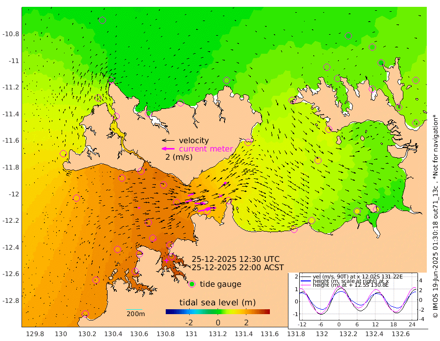200cm/s 78T +4cm/s rms + 6cm/s 51T. Darwin_C1 52m 131cm/s 93T +4cm/s rms + 7cm/s -161T. Darwin_CW1 22m 112cm/s 72T +4cm/s rms + 8cm/s 61T. Darwin_CW2 34m 112cm/s 46T +3cm/s rms + 9cm/s 98T. Darwin_CW3 22m 168cm/s 89T +5cm/s rms + 7cm/s 88T. Darwin_C3 56m 102cm/s 66T +2cm/s rms + 9cm/s -126T. Darwin_CTbW 22m 34cm/s 78T +1cm/s rms + 1cm/s -47T. DARBGF 30m 27cm/s 100T +4cm/s rms + 3cm/s 80T. NRSDAR 19m 14cm Goodrich Bank 199cm Point Jenny 199cm Native Point 205cm Fish Reef 220cm Tapa Bay 105cm Point Fawcett (Offshore) 242cm Burge Point 213cm Munkunuwa 177cm Beagle A 232cm Parsons Bank 232cm Fenton Patches 225cm Hancox Shoal Area 249cm Nightcliff 252cm Darwin 225cm Charles Point Patches 177cm Glyde Point 135cm Chambers Bay 119cm Point Stuart 145cm Cape Hotham 133cm Christine Reef 128cm West Alligator Head 110cm East Field Island 116cm Two Hills Bay 116cm Camp Point 219cm Medina Inlet South 94cm South Barlow Point 62cm St. Asaph Bay 17cm Cape Van Dieman 25cm Snake Bay 19cm Cache Point 36cm Point Jahleel (Off) 77cm Cape Don 35cm Port Essington 39cm Smith Point - West 31cm NW Peacock Island 20cm North Of Jones Shoal 8cm Peacock Island 35cm Point David 37cm D'urville Point 35cm Copeland Island 38cm One Tree Point