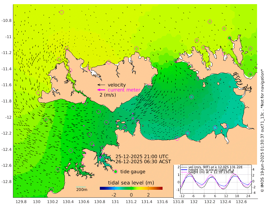 4cm/s -101T +4cm/s rms + 6cm/s 51T. Darwin_C1 52m 6cm/s 89T +4cm/s rms + 7cm/s -161T. Darwin_CW1 22m 7cm/s -110T +4cm/s rms + 8cm/s 61T. Darwin_CW2 34m 33cm/s -143T +3cm/s rms + 9cm/s 98T. Darwin_CW3 22m 28cm/s -89T +5cm/s rms + 7cm/s 88T. Darwin_C3 56m 3cm/s 50T +2cm/s rms + 9cm/s -126T. Darwin_CTbW 22m 37cm/s 98T +1cm/s rms + 1cm/s -47T. DARBGF 30m 40cm/s 129T +4cm/s rms + 3cm/s 80T. NRSDAR 19m 72cm Goodrich Bank 17cm Point Jenny 20cm Native Point 10cm Fish Reef 7cm Tapa Bay 57cm Point Fawcett (Offshore) -4cm Burge Point 18cm Munkunuwa 23cm Beagle A -4cm Parsons Bank -9cm Fenton Patches -21cm Hancox Shoal Area -29cm Nightcliff -18cm Darwin 8cm Charles Point Patches -52cm Glyde Point -116cm Chambers Bay -121cm Point Stuart -68cm Cape Hotham -99cm Christine Reef -143cm West Alligator Head -169cm East Field Island -78cm Two Hills Bay -68cm Camp Point 10cm Medina Inlet South 66cm South Barlow Point 68cm St. Asaph Bay 77cm Cape Van Dieman 74cm Snake Bay 67cm Cache Point 47cm Point Jahleel (Off) 15cm Cape Don 54cm Port Essington 51cm Smith Point - West 51cm NW Peacock Island 53cm North Of Jones Shoal 18cm Peacock Island 39cm Point David 52cm D'urville Point 33cm Copeland Island 37cm One Tree Point