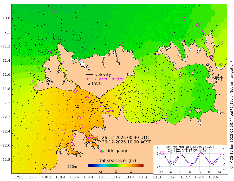 146cm/s 78T +4cm/s rms + 6cm/s 51T. Darwin_C1 52m 86cm/s 92T +4cm/s rms + 7cm/s -161T. Darwin_CW1 22m 66cm/s 73T +4cm/s rms + 8cm/s 61T. Darwin_CW2 34m 85cm/s 44T +3cm/s rms + 9cm/s 98T. Darwin_CW3 22m 98cm/s 89T +5cm/s rms + 7cm/s 88T. Darwin_C3 56m 71cm/s 65T +2cm/s rms + 9cm/s -126T. Darwin_CTbW 22m 16cm/s 80T +1cm/s rms + 1cm/s -47T. DARBGF 30m 14cm/s 91T +4cm/s rms + 3cm/s 80T. NRSDAR 19m -22cm Goodrich Bank 108cm Point Jenny 107cm Native Point 108cm Fish Reef 133cm Tapa Bay 35cm Point Fawcett (Offshore) 131cm Burge Point 120cm Munkunuwa 76cm Beagle A 150cm Parsons Bank 124cm Fenton Patches 152cm Hancox Shoal Area 146cm Nightcliff 156cm Darwin 137cm Charles Point Patches 110cm Glyde Point 86cm Chambers Bay 77cm Point Stuart 93cm Cape Hotham 77cm Christine Reef 80cm West Alligator Head 63cm East Field Island 73cm Two Hills Bay 71cm Camp Point 120cm Medina Inlet South 30cm South Barlow Point 4cm St. Asaph Bay -17cm Cape Van Dieman -11cm Snake Bay -15cm Cache Point 3cm Point Jahleel (Off) 43cm Cape Don 21cm Port Essington 24cm Smith Point - West 25cm NW Peacock Island 0cm North Of Jones Shoal 3cm Peacock Island 62cm Point David 34cm D'urville Point 66cm Copeland Island 49cm One Tree Point