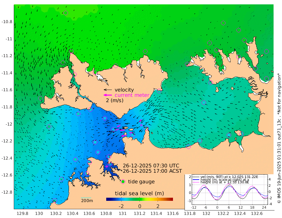 143cm/s -101T +4cm/s rms + 6cm/s 51T. Darwin_C1 52m 91cm/s -90T +4cm/s rms + 7cm/s -161T. Darwin_CW1 22m 69cm/s -106T +4cm/s rms + 8cm/s 61T. Darwin_CW2 34m 80cm/s -135T +3cm/s rms + 9cm/s 98T. Darwin_CW3 22m 114cm/s -90T +5cm/s rms + 7cm/s 88T. Darwin_C3 56m 80cm/s -115T +2cm/s rms + 9cm/s -126T. Darwin_CTbW 22m 6cm/s 173T +1cm/s rms + 1cm/s -47T. DARBGF 30m 13cm/s 166T +4cm/s rms + 3cm/s 80T. NRSDAR 19m 21cm Goodrich Bank -128cm Point Jenny -127cm Native Point -129cm Fish Reef -152cm Tapa Bay -40cm Point Fawcett (Offshore) -164cm Burge Point -131cm Munkunuwa -93cm Beagle A -170cm Parsons Bank -150cm Fenton Patches -174cm Hancox Shoal Area -174cm Nightcliff -190cm Darwin -166cm Charles Point Patches -153cm Glyde Point -151cm Chambers Bay -145cm Point Stuart -135cm Cape Hotham -140cm Christine Reef -156cm West Alligator Head -152cm East Field Island -122cm Two Hills Bay -125cm Camp Point -145cm Medina Inlet South -32cm South Barlow Point -4cm St. Asaph Bay 19cm Cape Van Dieman 12cm Snake Bay 14cm Cache Point -6cm Point Jahleel (Off) -64cm Cape Don -23cm Port Essington -20cm Smith Point - West -22cm NW Peacock Island 0cm North Of Jones Shoal -3cm Peacock Island -54cm Point David -27cm D'urville Point -57cm Copeland Island -49cm One Tree Point