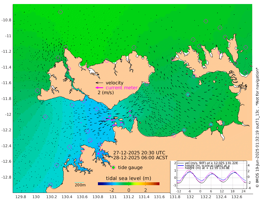 124cm/s -101T +4cm/s rms + 6cm/s 51T. Darwin_C1 52m 76cm/s -91T +4cm/s rms + 7cm/s -161T. Darwin_CW1 22m 69cm/s -106T +4cm/s rms + 8cm/s 61T. Darwin_CW2 34m 61cm/s -135T +3cm/s rms + 9cm/s 98T. Darwin_CW3 22m 106cm/s -91T +5cm/s rms + 7cm/s 88T. Darwin_C3 56m 73cm/s -115T +2cm/s rms + 9cm/s -126T. Darwin_CTbW 22m 19cm/s -103T +1cm/s rms + 1cm/s -47T. DARBGF 30m 14cm/s -85T +4cm/s rms + 3cm/s 80T. NRSDAR 19m 4cm Goodrich Bank -137cm Point Jenny -135cm Native Point -141cm Fish Reef -155cm Tapa Bay -62cm Point Fawcett (Offshore) -163cm Burge Point -139cm Munkunuwa -121cm Beagle A -164cm Parsons Bank -165cm Fenton Patches -168cm Hancox Shoal Area -179cm Nightcliff -175cm Darwin -152cm Charles Point Patches -137cm Glyde Point -125cm Chambers Bay -115cm Point Stuart -124cm Cape Hotham -115cm Christine Reef -125cm West Alligator Head -115cm East Field Island -105cm Two Hills Bay -96cm Camp Point -143cm Medina Inlet South -50cm South Barlow Point -28cm St. Asaph Bay 2cm Cape Van Dieman -4cm Snake Bay -5cm Cache Point -22cm Point Jahleel (Off) -56cm Cape Don -22cm Port Essington -31cm Smith Point - West -27cm NW Peacock Island -10cm North Of Jones Shoal -5cm Peacock Island -43cm Point David -33cm D'urville Point -46cm Copeland Island -38cm One Tree Point