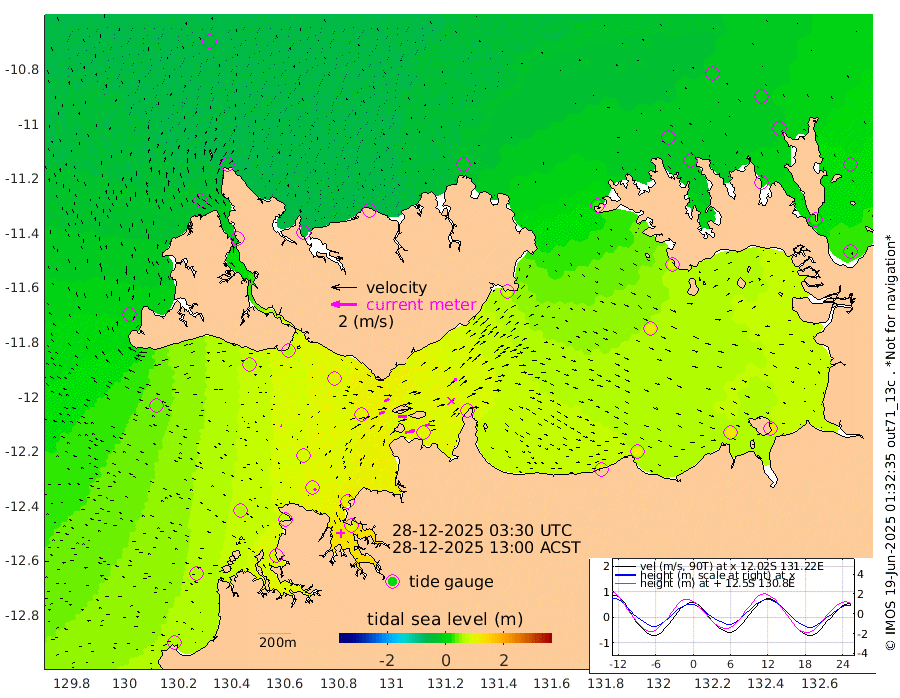 75cm/s 79T +4cm/s rms + 6cm/s 51T. Darwin_C1 52m 41cm/s 90T +4cm/s rms + 7cm/s -161T. Darwin_CW1 22m 42cm/s 71T +4cm/s rms + 8cm/s 61T. Darwin_CW2 34m 45cm/s 46T +3cm/s rms + 9cm/s 98T. Darwin_CW3 22m 67cm/s 89T +5cm/s rms + 7cm/s 88T. Darwin_C3 56m 42cm/s 65T +2cm/s rms + 9cm/s -126T. Darwin_CTbW 22m 8cm/s -61T +1cm/s rms + 1cm/s -47T. DARBGF 30m 17cm/s -41T +4cm/s rms + 3cm/s 80T. NRSDAR 19m -44cm Goodrich Bank 67cm Point Jenny 63cm Native Point 63cm Fish Reef 82cm Tapa Bay 1cm Point Fawcett (Offshore) 81cm Burge Point 60cm Munkunuwa 40cm Beagle A 90cm Parsons Bank 80cm Fenton Patches 105cm Hancox Shoal Area 102cm Nightcliff 98cm Darwin 80cm Charles Point Patches 93cm Glyde Point 118cm Chambers Bay 111cm Point Stuart 92cm Cape Hotham 106cm Christine Reef 123cm West Alligator Head 126cm East Field Island 86cm Two Hills Bay 80cm Camp Point 65cm Medina Inlet South -14cm South Barlow Point -25cm St. Asaph Bay -42cm Cape Van Dieman -43cm Snake Bay -34cm Cache Point -16cm Point Jahleel (Off) 26cm Cape Don -7cm Port Essington -2cm Smith Point - West -2cm NW Peacock Island -20cm North Of Jones Shoal -5cm Peacock Island 25cm Point David 3cm D'urville Point 31cm Copeland Island 17cm One Tree Point