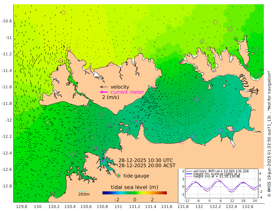19cm/s -104T +4cm/s rms + 6cm/s 51T. Darwin_C1 52m 6cm/s -80T +4cm/s rms + 7cm/s -161T. Darwin_CW1 22m 11cm/s -110T +4cm/s rms + 8cm/s 61T. Darwin_CW2 34m 28cm/s -137T +3cm/s rms + 9cm/s 98T. Darwin_CW3 22m 30cm/s -90T +5cm/s rms + 7cm/s 88T. Darwin_C3 56m 8cm/s -113T +2cm/s rms + 9cm/s -126T. Darwin_CTbW 22m 31cm/s 97T +1cm/s rms + 1cm/s -47T. DARBGF 30m 36cm/s 129T +4cm/s rms + 3cm/s 80T. NRSDAR 19m 74cm Goodrich Bank 3cm Point Jenny 6cm Native Point 8cm Fish Reef -7cm Tapa Bay 56cm Point Fawcett (Offshore) -12cm Burge Point 8cm Munkunuwa 30cm Beagle A -20cm Parsons Bank -6cm Fenton Patches -34cm Hancox Shoal Area -28cm Nightcliff -28cm Darwin -8cm Charles Point Patches -50cm Glyde Point -98cm Chambers Bay -102cm Point Stuart -56cm Cape Hotham -87cm Christine Reef -116cm West Alligator Head -131cm East Field Island -63cm Two Hills Bay -63cm Camp Point 2cm Medina Inlet South 64cm South Barlow Point 72cm St. Asaph Bay 75cm Cape Van Dieman 76cm Snake Bay 69cm Cache Point 51cm Point Jahleel (Off) 6cm Cape Don 40cm Port Essington 42cm Smith Point - West 39cm NW Peacock Island 52cm North Of Jones Shoal 16cm Peacock Island 8cm Point David 37cm D'urville Point 3cm Copeland Island 14cm One Tree Point