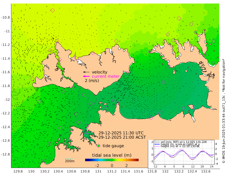 20cm/s -105T +4cm/s rms + 6cm/s 51T. Darwin_C1 52m 15cm/s -83T +4cm/s rms + 7cm/s -161T. Darwin_CW1 22m 11cm/s -111T +4cm/s rms + 8cm/s 61T. Darwin_CW2 34m 23cm/s -136T +3cm/s rms + 9cm/s 98T. Darwin_CW3 22m 26cm/s -89T +5cm/s rms + 7cm/s 88T. Darwin_C3 56m 9cm/s -111T +2cm/s rms + 9cm/s -126T. Darwin_CTbW 22m 24cm/s 96T +1cm/s rms + 1cm/s -47T. DARBGF 30m 27cm/s 129T +4cm/s rms + 3cm/s 80T. NRSDAR 19m 79cm Goodrich Bank 8cm Point Jenny 11cm Native Point 13cm Fish Reef 0cm Tapa Bay 58cm Point Fawcett (Offshore) -4cm Burge Point 9cm Munkunuwa 33cm Beagle A -10cm Parsons Bank 1cm Fenton Patches -22cm Hancox Shoal Area -19cm Nightcliff -14cm Darwin 5cm Charles Point Patches -33cm Glyde Point -72cm Chambers Bay -76cm Point Stuart -38cm Cape Hotham -64cm Christine Reef -89cm West Alligator Head -100cm East Field Island -42cm Two Hills Bay -42cm Camp Point 9cm Medina Inlet South 67cm South Barlow Point 73cm St. Asaph Bay 79cm Cape Van Dieman 81cm Snake Bay 74cm Cache Point 58cm Point Jahleel (Off) 19cm Cape Don 51cm Port Essington 51cm Smith Point - West 50cm NW Peacock Island 60cm North Of Jones Shoal 19cm Peacock Island 23cm Point David 47cm D'urville Point 17cm Copeland Island 28cm One Tree Point