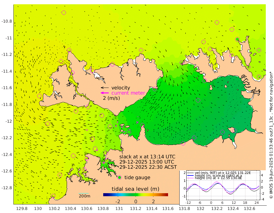44cm/s 78T +4cm/s rms + 6cm/s 51T. Darwin_C1 52m 19cm/s 87T +4cm/s rms + 7cm/s -161T. Darwin_CW1 22m 33cm/s 74T +4cm/s rms + 8cm/s 61T. Darwin_CW2 34m 7cm/s 77T +3cm/s rms + 9cm/s 98T. Darwin_CW3 22m 36cm/s 88T +5cm/s rms + 7cm/s 88T. Darwin_C3 56m 32cm/s 63T +2cm/s rms + 9cm/s -126T. Darwin_CTbW 22m 40cm/s 91T +1cm/s rms + 1cm/s -47T. DARBGF 30m 40cm/s 121T +4cm/s rms + 3cm/s 80T. NRSDAR 19m 80cm Goodrich Bank 81cm Point Jenny 85cm Native Point 89cm Fish Reef 81cm Tapa Bay 95cm Point Fawcett (Offshore) 83cm Burge Point 89cm Munkunuwa 94cm Beagle A 81cm Parsons Bank 82cm Fenton Patches 62cm Hancox Shoal Area 68cm Nightcliff 77cm Darwin 84cm Charles Point Patches 30cm Glyde Point -30cm Chambers Bay -37cm Point Stuart 13cm Cape Hotham -25cm Christine Reef -49cm West Alligator Head -73cm East Field Island -1cm Two Hills Bay -7cm Camp Point 88cm Medina Inlet South 101cm South Barlow Point 91cm St. Asaph Bay 84cm Cape Van Dieman 90cm Snake Bay 80cm Cache Point 71cm Point Jahleel (Off) 51cm Cape Don 69cm Port Essington 71cm Smith Point - West 69cm NW Peacock Island 68cm North Of Jones Shoal 23cm Peacock Island 54cm Point David 71cm D'urville Point 49cm Copeland Island 56cm One Tree Point