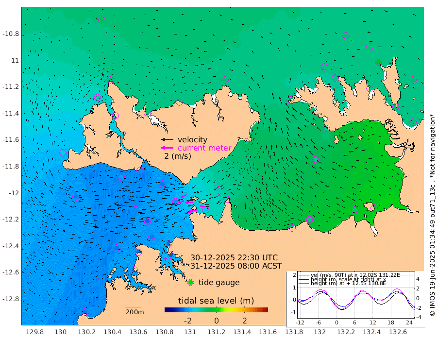 143cm/s -102T +4cm/s rms + 6cm/s 51T. Darwin_C1 52m 93cm/s -90T +4cm/s rms + 7cm/s -161T. Darwin_CW1 22m 89cm/s -107T +4cm/s rms + 8cm/s 61T. Darwin_CW2 34m 56cm/s -131T +3cm/s rms + 9cm/s 98T. Darwin_CW3 22m 125cm/s -91T +5cm/s rms + 7cm/s 88T. Darwin_C3 56m 91cm/s -116T +2cm/s rms + 9cm/s -126T. Darwin_CTbW 22m 51cm/s -94T +1cm/s rms + 1cm/s -47T. DARBGF 30m 42cm/s -63T +4cm/s rms + 3cm/s 80T. NRSDAR 19m -75cm Goodrich Bank -214cm Point Jenny -212cm Native Point -217cm Fish Reef -223cm Tapa Bay -157cm Point Fawcett (Offshore) -230cm Burge Point -202cm Munkunuwa -204cm Beagle A -217cm Parsons Bank -229cm Fenton Patches -211cm Hancox Shoal Area -226cm Nightcliff -228cm Darwin -224cm Charles Point Patches -162cm Glyde Point -109cm Chambers Bay -94cm Point Stuart -134cm Cape Hotham -109cm Christine Reef -93cm West Alligator Head -69cm East Field Island -109cm Two Hills Bay -102cm Camp Point -213cm Medina Inlet South -137cm South Barlow Point -116cm St. Asaph Bay -80cm Cape Van Dieman -83cm Snake Bay -87cm Cache Point -90cm Point Jahleel (Off) -109cm Cape Don -90cm Port Essington -97cm Smith Point - West -91cm NW Peacock Island -79cm North Of Jones Shoal -28cm Peacock Island -87cm Point David -97cm D'urville Point -86cm Copeland Island -88cm One Tree Point