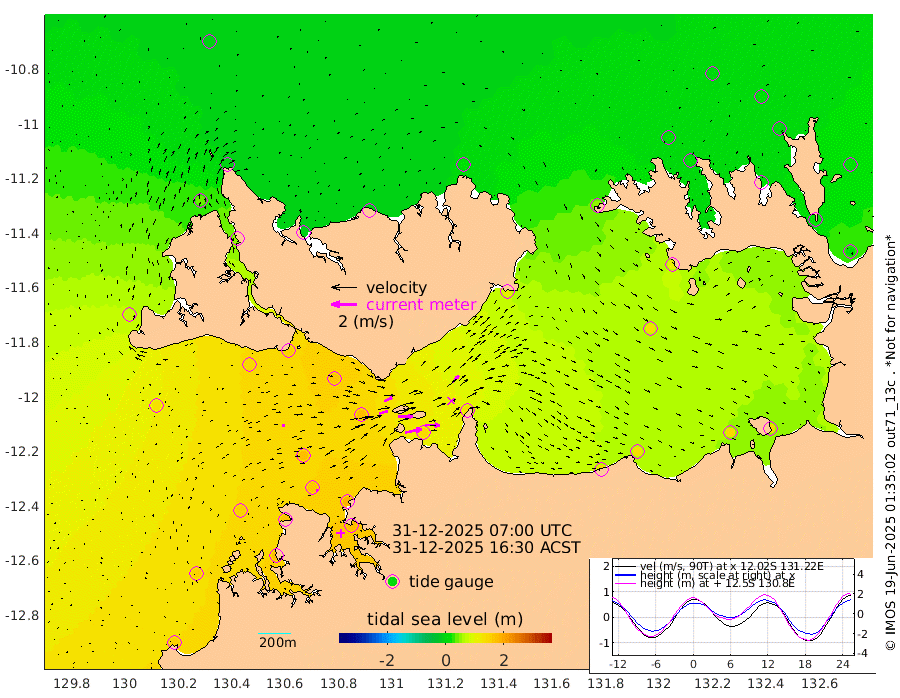 132cm/s 78T +4cm/s rms + 6cm/s 51T. Darwin_C1 52m 115cm/s 92T +4cm/s rms + 7cm/s -161T. Darwin_CW1 22m 69cm/s 73T +4cm/s rms + 8cm/s 61T. Darwin_CW2 34m 73cm/s 44T +3cm/s rms + 9cm/s 98T. Darwin_CW3 22m 115cm/s 90T +5cm/s rms + 7cm/s 88T. Darwin_C3 56m 69cm/s 66T +2cm/s rms + 9cm/s -126T. Darwin_CTbW 22m 18cm/s 72T +1cm/s rms + 1cm/s -47T. DARBGF 30m 12cm/s 95T +4cm/s rms + 3cm/s 80T. NRSDAR 19m -3cm Goodrich Bank 154cm Point Jenny 149cm Native Point 151cm Fish Reef 165cm Tapa Bay 75cm Point Fawcett (Offshore) 176cm Burge Point 142cm Munkunuwa 132cm Beagle A 159cm Parsons Bank 173cm Fenton Patches 170cm Hancox Shoal Area 185cm Nightcliff 177cm Darwin 163cm Charles Point Patches 143cm Glyde Point 137cm Chambers Bay 127cm Point Stuart 127cm Cape Hotham 135cm Christine Reef 139cm West Alligator Head 136cm East Field Island 108cm Two Hills Bay 110cm Camp Point 150cm Medina Inlet South 48cm South Barlow Point 36cm St. Asaph Bay -2cm Cape Van Dieman -5cm Snake Bay 7cm Cache Point 20cm Point Jahleel (Off) 56cm Cape Don 16cm Port Essington 21cm Smith Point - West 14cm NW Peacock Island 6cm North Of Jones Shoal 2cm Peacock Island 18cm Point David 17cm D'urville Point 22cm Copeland Island 19cm One Tree Point