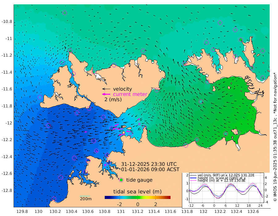 169cm/s -102T +4cm/s rms + 6cm/s 51T. Darwin_C1 52m 117cm/s -90T +4cm/s rms + 7cm/s -161T. Darwin_CW1 22m 101cm/s -107T +4cm/s rms + 8cm/s 61T. Darwin_CW2 34m 67cm/s -130T +3cm/s rms + 9cm/s 98T. Darwin_CW3 22m 139cm/s -91T +5cm/s rms + 7cm/s 88T. Darwin_C3 56m 107cm/s -115T +2cm/s rms + 9cm/s -126T. Darwin_CTbW 22m 59cm/s -94T +1cm/s rms + 1cm/s -47T. DARBGF 30m 47cm/s -63T +4cm/s rms + 3cm/s 80T. NRSDAR 19m -89cm Goodrich Bank -246cm Point Jenny -244cm Native Point -249cm Fish Reef -254cm Tapa Bay -184cm Point Fawcett (Offshore) -264cm Burge Point -232cm Munkunuwa -234cm Beagle A -246cm Parsons Bank -260cm Fenton Patches -238cm Hancox Shoal Area -256cm Nightcliff -261cm Darwin -259cm Charles Point Patches -183cm Glyde Point -116cm Chambers Bay -100cm Point Stuart -149cm Cape Hotham -118cm Christine Reef -98cm West Alligator Head -71cm East Field Island -119cm Two Hills Bay -116cm Camp Point -246cm Medina Inlet South -160cm South Barlow Point -137cm St. Asaph Bay -96cm Cape Van Dieman -99cm Snake Bay -103cm Cache Point -104cm Point Jahleel (Off) -125cm Cape Don -105cm Port Essington -111cm Smith Point - West -103cm NW Peacock Island -93cm North Of Jones Shoal -33cm Peacock Island -98cm Point David -109cm D'urville Point -96cm Copeland Island -101cm One Tree Point