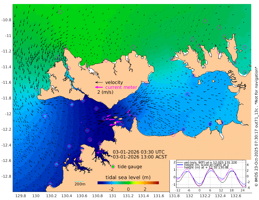 192cm/s -101T +4cm/s rms + 6cm/s 51T. Darwin_C1 52m 174cm/s -92T +4cm/s rms + 7cm/s -161T. Darwin_CW1 22m 83cm/s -106T +4cm/s rms + 8cm/s 61T. Darwin_CW2 34m 115cm/s -137T +3cm/s rms + 9cm/s 98T. Darwin_CW3 22m 150cm/s -90T +5cm/s rms + 7cm/s 88T. Darwin_C3 56m 102cm/s -116T +2cm/s rms + 9cm/s -126T. Darwin_CTbW 22m 10cm/s 165T +1cm/s rms + 1cm/s -47T. DARBGF 30m 18cm/s 152T +4cm/s rms + 3cm/s 80T. NRSDAR 19m -5cm Goodrich Bank -215cm Point Jenny -213cm Native Point -229cm Fish Reef -245cm Tapa Bay -100cm Point Fawcett (Offshore) -277cm Burge Point -208cm Munkunuwa -186cm Beagle A -262cm Parsons Bank -263cm Fenton Patches -268cm Hancox Shoal Area -274cm Nightcliff -303cm Darwin -272cm Charles Point Patches -253cm Glyde Point -236cm Chambers Bay -241cm Point Stuart -230cm Cape Hotham -224cm Christine Reef -258cm West Alligator Head -262cm East Field Island -204cm Two Hills Bay -212cm Camp Point -237cm Medina Inlet South -78cm South Barlow Point -44cm St. Asaph Bay -7cm Cape Van Dieman -16cm Snake Bay -19cm Cache Point -43cm Point Jahleel (Off) -115cm Cape Don -57cm Port Essington -52cm Smith Point - West -53cm NW Peacock Island -29cm North Of Jones Shoal -13cm Peacock Island -88cm Point David -58cm D'urville Point -91cm Copeland Island -85cm One Tree Point