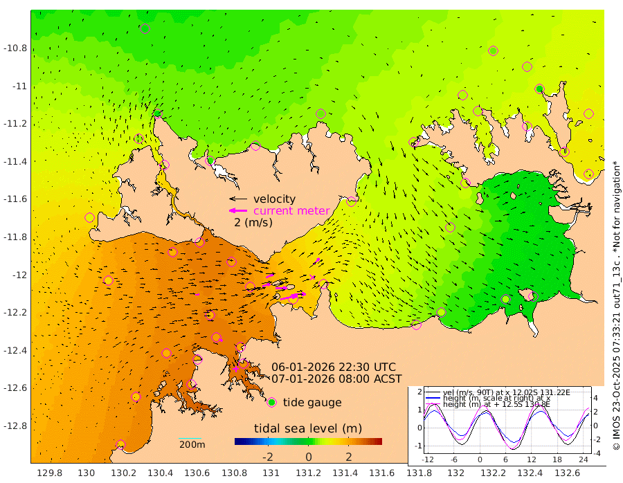 196cm/s 78T +4cm/s rms + 6cm/s 51T. Darwin_C1 52m 135cm/s 91T +4cm/s rms + 7cm/s -161T. Darwin_CW1 22m 90cm/s 74T +4cm/s rms + 8cm/s 61T. Darwin_CW2 34m 103cm/s 45T +3cm/s rms + 9cm/s 98T. Darwin_CW3 22m 131cm/s 89T +5cm/s rms + 7cm/s 88T. Darwin_C3 56m 96cm/s 65T +2cm/s rms + 9cm/s -126T. Darwin_CTbW 22m 46cm/s 87T +1cm/s rms + 1cm/s -47T. DARBGF 30m 43cm/s 112T +4cm/s rms + 3cm/s 80T. NRSDAR 19m 11cm Goodrich Bank 166cm Point Jenny 164cm Native Point 183cm Fish Reef 191cm Tapa Bay 101cm Point Fawcett (Offshore) 197cm Burge Point 187cm Munkunuwa 136cm Beagle A 210cm Parsons Bank 181cm Fenton Patches 197cm Hancox Shoal Area 199cm Nightcliff 223cm Darwin 208cm Charles Point Patches 140cm Glyde Point 74cm Chambers Bay 69cm Point Stuart 114cm Cape Hotham 61cm Christine Reef 64cm West Alligator Head 32cm East Field Island 81cm Two Hills Bay 75cm Camp Point 192cm Medina Inlet South 89cm South Barlow Point 55cm St. Asaph Bay 21cm Cape Van Dieman 31cm Snake Bay 22cm Cache Point 35cm Point Jahleel (Off) 77cm Cape Don 60cm Port Essington 58cm Smith Point - West 56cm NW Peacock Island 40cm North Of Jones Shoal 18cm Peacock Island 89cm Point David 67cm D'urville Point 91cm Copeland Island 84cm One Tree Point