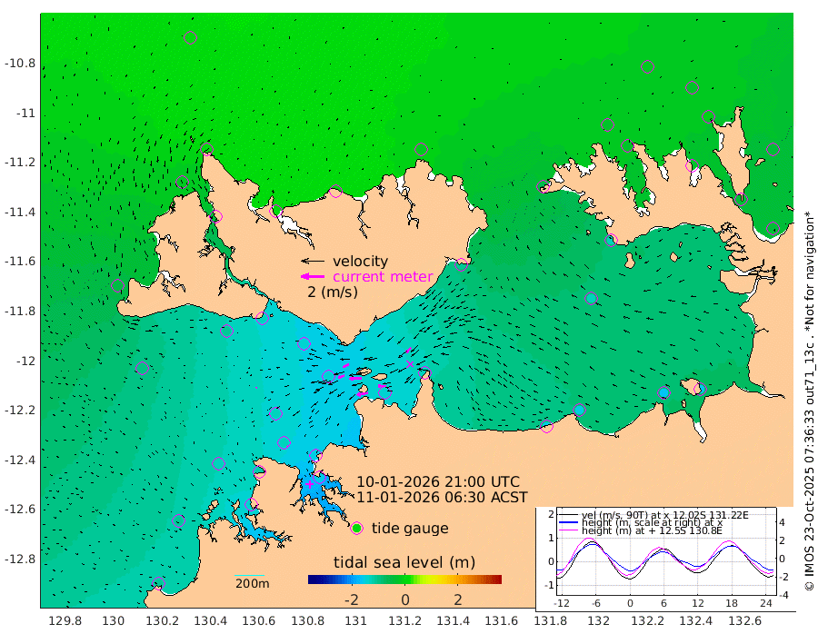 99cm/s -101T +4cm/s rms + 6cm/s 51T. Darwin_C1 52m 69cm/s -91T +4cm/s rms + 7cm/s -161T. Darwin_CW1 22m 55cm/s -105T +4cm/s rms + 8cm/s 61T. Darwin_CW2 34m 58cm/s -136T +3cm/s rms + 9cm/s 98T. Darwin_CW3 22m 102cm/s -90T +5cm/s rms + 7cm/s 88T. Darwin_C3 56m 55cm/s -116T +2cm/s rms + 9cm/s -126T. Darwin_CTbW 22m 7cm/s -150T +1cm/s rms + 1cm/s -47T. DARBGF 30m 9cm/s 170T +4cm/s rms + 3cm/s 80T. NRSDAR 19m 9cm Goodrich Bank -108cm Point Jenny -103cm Native Point -127cm Fish Reef -121cm Tapa Bay -54cm Point Fawcett (Offshore) -137cm Burge Point -107cm Munkunuwa -95cm Beagle A -136cm Parsons Bank -134cm Fenton Patches -139cm Hancox Shoal Area -147cm Nightcliff -155cm Darwin -134cm Charles Point Patches -137cm Glyde Point -148cm Chambers Bay -150cm Point Stuart -135cm Cape Hotham -131cm Christine Reef -165cm West Alligator Head -167cm East Field Island -129cm Two Hills Bay -110cm Camp Point -124cm Medina Inlet South -35cm South Barlow Point -18cm St. Asaph Bay 9cm Cape Van Dieman 3cm Snake Bay -4cm Cache Point -20cm Point Jahleel (Off) -63cm Cape Don -25cm Port Essington -28cm Smith Point - West -25cm NW Peacock Island -18cm North Of Jones Shoal -8cm Peacock Island -37cm Point David -29cm D'urville Point -40cm Copeland Island -42cm One Tree Point