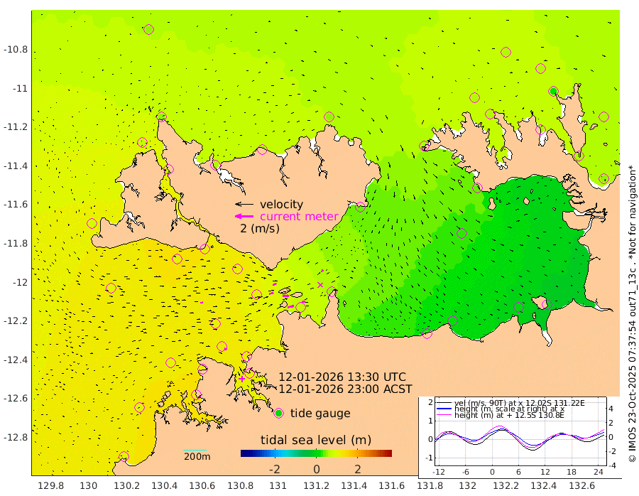 65cm/s 77T +4cm/s rms + 6cm/s 51T. Darwin_C1 52m 35cm/s 88T +4cm/s rms + 7cm/s -161T. Darwin_CW1 22m 49cm/s 74T +4cm/s rms + 8cm/s 61T. Darwin_CW2 34m 28cm/s 48T +3cm/s rms + 9cm/s 98T. Darwin_CW3 22m 71cm/s 89T +5cm/s rms + 7cm/s 88T. Darwin_C3 56m 44cm/s 64T +2cm/s rms + 9cm/s -126T. Darwin_CTbW 22m 29cm/s 87T +1cm/s rms + 1cm/s -47T. DARBGF 30m 26cm/s 114T +4cm/s rms + 3cm/s 80T. NRSDAR 19m 54cm Goodrich Bank 98cm Point Jenny 99cm Native Point 101cm Fish Reef 104cm Tapa Bay 81cm Point Fawcett (Offshore) 110cm Burge Point 100cm Munkunuwa 97cm Beagle A 110cm Parsons Bank 107cm Fenton Patches 101cm Hancox Shoal Area 114cm Nightcliff 118cm Darwin 115cm Charles Point Patches 70cm Glyde Point 32cm Chambers Bay 17cm Point Stuart 52cm Cape Hotham 33cm Christine Reef 11cm West Alligator Head -5cm East Field Island 38cm Two Hills Bay 39cm Camp Point 110cm Medina Inlet South 87cm South Barlow Point 70cm St. Asaph Bay 56cm Cape Van Dieman 66cm Snake Bay 55cm Cache Point 56cm Point Jahleel (Off) 61cm Cape Don 59cm Port Essington 62cm Smith Point - West 60cm NW Peacock Island 59cm North Of Jones Shoal 21cm Peacock Island 57cm Point David 64cm D'urville Point 55cm Copeland Island 61cm One Tree Point