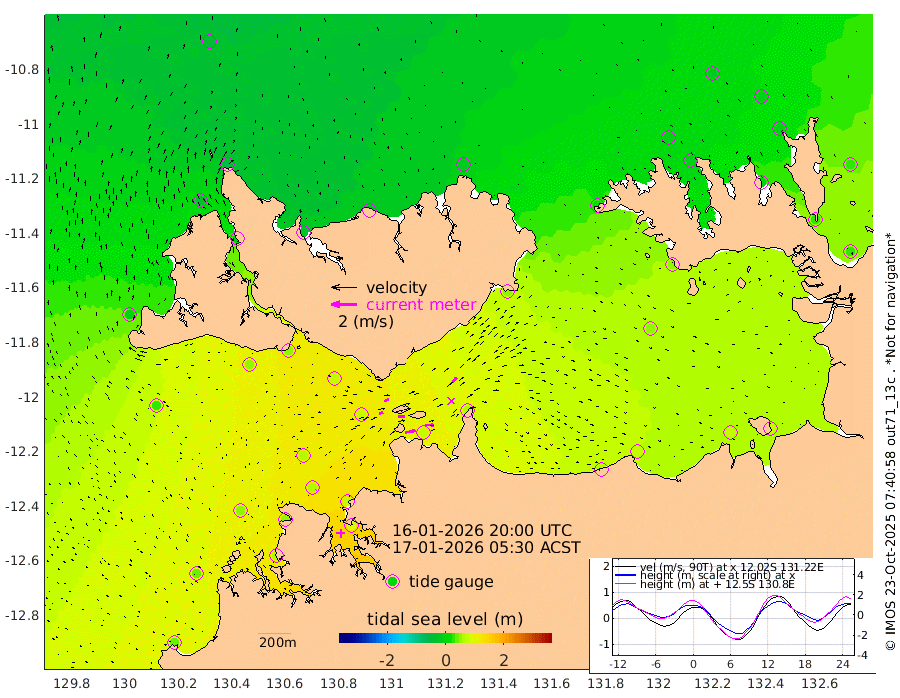 80cm/s 78T +4cm/s rms + 6cm/s 51T. Darwin_C1 52m 71cm/s 91T +4cm/s rms + 7cm/s -161T. Darwin_CW1 22m 32cm/s 72T +4cm/s rms + 8cm/s 61T. Darwin_CW2 34m 53cm/s 40T +3cm/s rms + 9cm/s 98T. Darwin_CW3 22m 52cm/s 90T +5cm/s rms + 7cm/s 88T. Darwin_C3 56m 38cm/s 66T +2cm/s rms + 9cm/s -126T. Darwin_CTbW 22m 2cm/s 28T +1cm/s rms + 1cm/s -47T. DARBGF 30m 3cm/s 26T +4cm/s rms + 3cm/s 80T. NRSDAR 19m -42cm Goodrich Bank 38cm Point Jenny 37cm Native Point 52cm Fish Reef 54cm Tapa Bay -4cm Point Fawcett (Offshore) 62cm Burge Point 47cm Munkunuwa 23cm Beagle A 70cm Parsons Bank 57cm Fenton Patches 70cm Hancox Shoal Area 75cm Nightcliff 84cm Darwin 65cm Charles Point Patches 68cm Glyde Point 61cm Chambers Bay 70cm Point Stuart 65cm Cape Hotham 48cm Christine Reef 74cm West Alligator Head 73cm East Field Island 54cm Two Hills Bay 54cm Camp Point 56cm Medina Inlet South -8cm South Barlow Point -27cm St. Asaph Bay -39cm Cape Van Dieman -30cm Snake Bay -36cm Cache Point -21cm Point Jahleel (Off) 17cm Cape Don -5cm Port Essington -9cm Smith Point - West -6cm NW Peacock Island -15cm North Of Jones Shoal -2cm Peacock Island 29cm Point David -1cm D'urville Point 32cm Copeland Island 24cm One Tree Point