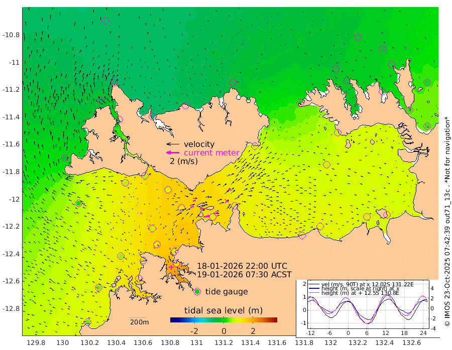 101cm/s 79T +4cm/s rms + 6cm/s 51T. Darwin_C1 52m 81cm/s 93T +4cm/s rms + 7cm/s -161T. Darwin_CW1 22m 49cm/s 68T +4cm/s rms + 8cm/s 61T. Darwin_CW2 34m 72cm/s 42T +3cm/s rms + 9cm/s 98T. Darwin_CW3 22m 76cm/s 89T +5cm/s rms + 7cm/s 88T. Darwin_C3 56m 45cm/s 66T +2cm/s rms + 9cm/s -126T. Darwin_CTbW 22m 13cm/s -72T +1cm/s rms + 1cm/s -47T. DARBGF 30m 22cm/s -47T +4cm/s rms + 3cm/s 80T. NRSDAR 19m -73cm Goodrich Bank 38cm Point Jenny 37cm Native Point 54cm Fish Reef 66cm Tapa Bay -27cm Point Fawcett (Offshore) 75cm Burge Point 57cm Munkunuwa 13cm Beagle A 90cm Parsons Bank 68cm Fenton Patches 97cm Hancox Shoal Area 96cm Nightcliff 110cm Darwin 81cm Charles Point Patches 92cm Glyde Point 98cm Chambers Bay 106cm Point Stuart 91cm Cape Hotham 76cm Christine Reef 116cm West Alligator Head 120cm East Field Island 77cm Two Hills Bay 77cm Camp Point 65cm Medina Inlet South -32cm South Barlow Point -55cm St. Asaph Bay -71cm Cape Van Dieman -60cm Snake Bay -68cm Cache Point -42cm Point Jahleel (Off) 8cm Cape Don -25cm Port Essington -29cm Smith Point - West -25cm NW Peacock Island -40cm North Of Jones Shoal -10cm Peacock Island 23cm Point David -19cm D'urville Point 29cm Copeland Island 14cm One Tree Point