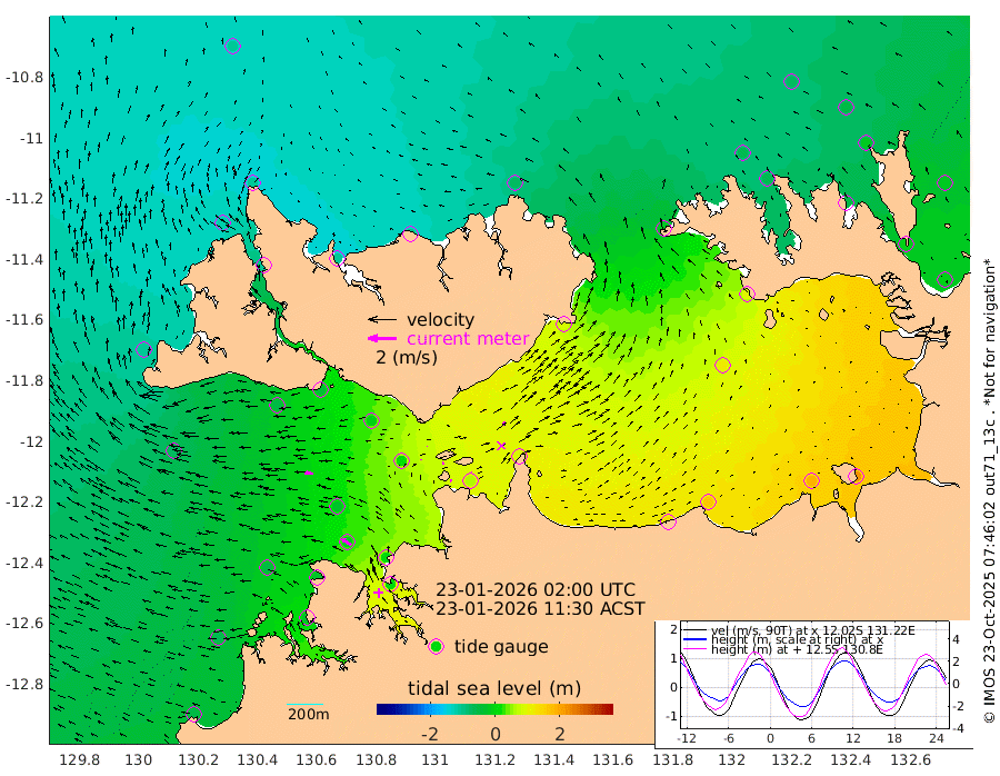 7cm/s 97T +4cm/s rms + 6cm/s 51T. Darwin_C1 52m 2cm/s -54T +4cm/s rms + 7cm/s -161T. Darwin_CW1 22m 3cm/s 7T +4cm/s rms + 8cm/s 61T. Darwin_CW2 34m 28cm/s 39T +3cm/s rms + 9cm/s 98T. Darwin_CW3 22m 16cm/s 93T +5cm/s rms + 7cm/s 88T. Darwin_C3 56m 1cm/s 77T +2cm/s rms + 9cm/s -126T. Darwin_CTbW 22m 62cm/s -85T +1cm/s rms + 1cm/s -47T. DARBGF 30m 76cm/s -54T +4cm/s rms + 3cm/s 80T. NRSDAR 19m -106cm Goodrich Bank -53cm Point Jenny -56cm Native Point -47cm Fish Reef -31cm Tapa Bay -104cm Point Fawcett (Offshore) -30cm Burge Point -55cm Munkunuwa -76cm Beagle A -10cm Parsons Bank -28cm Fenton Patches 18cm Hancox Shoal Area 3cm Nightcliff 8cm Darwin -21cm Charles Point Patches 59cm Glyde Point 144cm Chambers Bay 158cm Point Stuart 83cm Cape Hotham 120cm Christine Reef 182cm West Alligator Head 216cm East Field Island 98cm Two Hills Bay 89cm Camp Point -41cm Medina Inlet South -111cm South Barlow Point -115cm St. Asaph Bay -111cm Cape Van Dieman -108cm Snake Bay -99cm Cache Point -71cm Point Jahleel (Off) -19cm Cape Don -61cm Port Essington -61cm Smith Point - West -54cm NW Peacock Island -70cm North Of Jones Shoal -22cm Peacock Island -10cm Point David -52cm D'urville Point -1cm Copeland Island -19cm One Tree Point