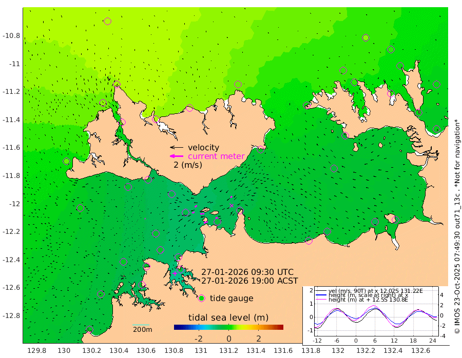 64cm/s -101T +4cm/s rms + 6cm/s 51T. Darwin_C1 52m 32cm/s -89T +4cm/s rms + 7cm/s -161T. Darwin_CW1 22m 36cm/s -109T +4cm/s rms + 8cm/s 61T. Darwin_CW2 34m 29cm/s -128T +3cm/s rms + 9cm/s 98T. Darwin_CW3 22m 55cm/s -92T +5cm/s rms + 7cm/s 88T. Darwin_C3 56m 40cm/s -115T +2cm/s rms + 9cm/s -126T. Darwin_CTbW 22m 5cm/s 118T +1cm/s rms + 1cm/s -47T. DARBGF 30m 9cm/s 155T +4cm/s rms + 3cm/s 80T. NRSDAR 19m 66cm Goodrich Bank -17cm Point Jenny -16cm Native Point -18cm Fish Reef -27cm Tapa Bay 34cm Point Fawcett (Offshore) -33cm Burge Point -33cm Munkunuwa 9cm Beagle A -49cm Parsons Bank -24cm Fenton Patches -46cm Hancox Shoal Area -42cm Nightcliff -43cm Darwin -19cm Charles Point Patches -38cm Glyde Point -47cm Chambers Bay -55cm Point Stuart -39cm Cape Hotham -42cm Christine Reef -63cm West Alligator Head -58cm East Field Island -37cm Two Hills Bay -24cm Camp Point -24cm Medina Inlet South 37cm South Barlow Point 53cm St. Asaph Bay 62cm Cape Van Dieman 60cm Snake Bay 61cm Cache Point 44cm Point Jahleel (Off) 7cm Cape Don 33cm Port Essington 32cm Smith Point - West 31cm NW Peacock Island 48cm North Of Jones Shoal 14cm Peacock Island 3cm Point David 26cm D'urville Point -1cm Copeland Island 10cm One Tree Point
