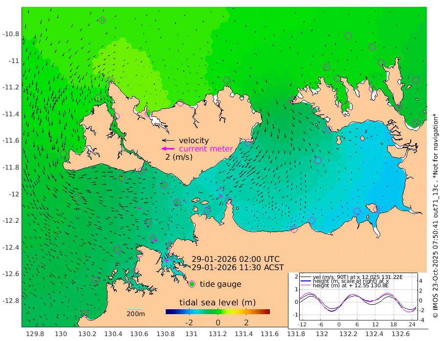 6cm/s -92T +4cm/s rms + 6cm/s 51T. Darwin_C1 52m 37cm/s -96T +4cm/s rms + 7cm/s -161T. Darwin_CW1 22m 12cm/s 69T +4cm/s rms + 8cm/s 61T. Darwin_CW2 34m 35cm/s -150T +3cm/s rms + 9cm/s 98T. Darwin_CW3 22m 8cm/s -69T +5cm/s rms + 7cm/s 88T. Darwin_C3 56m 6cm/s 67T +2cm/s rms + 9cm/s -126T. Darwin_CTbW 22m 41cm/s 96T +1cm/s rms + 1cm/s -47T. DARBGF 30m 45cm/s 123T +4cm/s rms + 3cm/s 80T. NRSDAR 19m 20cm Goodrich Bank -33cm Point Jenny -32cm Native Point -35cm Fish Reef -43cm Tapa Bay 13cm Point Fawcett (Offshore) -61cm Burge Point -9cm Munkunuwa -32cm Beagle A -46cm Parsons Bank -65cm Fenton Patches -64cm Hancox Shoal Area -64cm Nightcliff -72cm Darwin -58cm Charles Point Patches -97cm Glyde Point -135cm Chambers Bay -145cm Point Stuart -102cm Cape Hotham -126cm Christine Reef -158cm West Alligator Head -189cm East Field Island -103cm Two Hills Bay -117cm Camp Point -34cm Medina Inlet South 20cm South Barlow Point 25cm St. Asaph Bay 24cm Cape Van Dieman 22cm Snake Bay 15cm Cache Point 3cm Point Jahleel (Off) -31cm Cape Don 0cm Port Essington 4cm Smith Point - West -2cm NW Peacock Island 10cm North Of Jones Shoal 2cm Peacock Island -24cm Point David 0cm D'urville Point -27cm Copeland Island -20cm One Tree Point