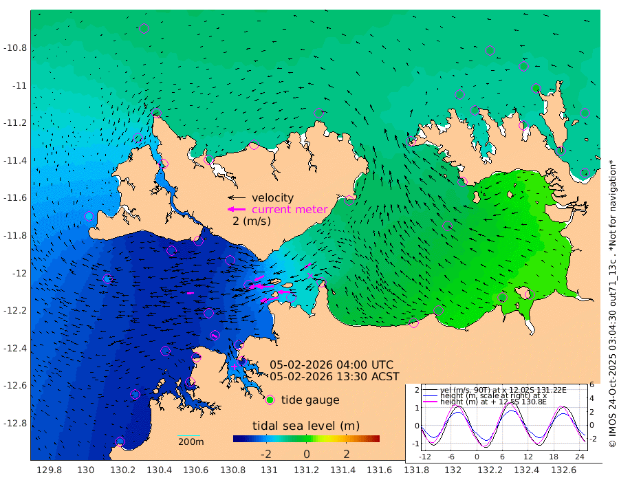 211cm/s -102T +4cm/s rms + 6cm/s 51T. Darwin_C1 52m 157cm/s -89T +4cm/s rms + 7cm/s -161T. Darwin_CW1 22m 134cm/s -107T +4cm/s rms + 8cm/s 61T. Darwin_CW2 34m 87cm/s -128T +3cm/s rms + 9cm/s 98T. Darwin_CW3 22m 181cm/s -91T +5cm/s rms + 7cm/s 88T. Darwin_C3 56m 117cm/s -115T +2cm/s rms + 9cm/s -126T. Darwin_CTbW 22m 76cm/s -93T +1cm/s rms + 1cm/s -47T. DARBGF 30m 64cm/s -65T +4cm/s rms + 3cm/s 80T. NRSDAR 19m -59cm Goodrich Bank -235cm Point Jenny -238cm Native Point -250cm Fish Reef -262cm Tapa Bay -168cm Point Fawcett (Offshore) -266cm Burge Point -264cm Munkunuwa -210cm Beagle A -263cm Parsons Bank -251cm Fenton Patches -242cm Hancox Shoal Area -260cm Nightcliff -283cm Darwin -273cm Charles Point Patches -163cm Glyde Point -60cm Chambers Bay -40cm Point Stuart -115cm Cape Hotham -50cm Christine Reef -32cm West Alligator Head 14cm East Field Island -70cm Two Hills Bay -74cm Camp Point -265cm Medina Inlet South -154cm South Barlow Point -118cm St. Asaph Bay -69cm Cape Van Dieman -80cm Snake Bay -63cm Cache Point -69cm Point Jahleel (Off) -93cm Cape Don -78cm Port Essington -75cm Smith Point - West -67cm NW Peacock Island -59cm North Of Jones Shoal -22cm Peacock Island -74cm Point David -75cm D'urville Point -70cm Copeland Island -74cm One Tree Point