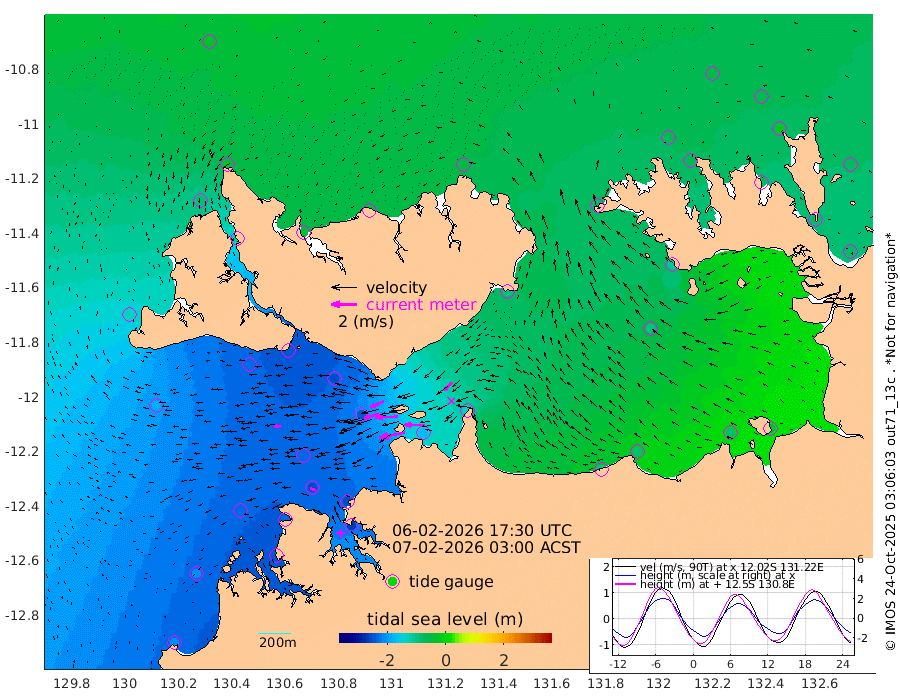 205cm/s -101T +4cm/s rms + 6cm/s 51T. Darwin_C1 52m 156cm/s -90T +4cm/s rms + 7cm/s -161T. Darwin_CW1 22m 120cm/s -106T +4cm/s rms + 8cm/s 61T. Darwin_CW2 34m 88cm/s -133T +3cm/s rms + 9cm/s 98T. Darwin_CW3 22m 176cm/s -91T +5cm/s rms + 7cm/s 88T. Darwin_C3 56m 114cm/s -115T +2cm/s rms + 9cm/s -126T. Darwin_CTbW 22m 58cm/s -94T +1cm/s rms + 1cm/s -47T. DARBGF 30m 47cm/s -69T +4cm/s rms + 3cm/s 80T. NRSDAR 19m -27cm Goodrich Bank -207cm Point Jenny -205cm Native Point -229cm Fish Reef -233cm Tapa Bay -133cm Point Fawcett (Offshore) -244cm Burge Point -230cm Munkunuwa -185cm Beagle A -248cm Parsons Bank -234cm Fenton Patches -237cm Hancox Shoal Area -254cm Nightcliff -268cm Darwin -249cm Charles Point Patches -171cm Glyde Point -104cm Chambers Bay -87cm Point Stuart -139cm Cape Hotham -91cm Christine Reef -87cm West Alligator Head -55cm East Field Island -102cm Two Hills Bay -92cm Camp Point -238cm Medina Inlet South -118cm South Barlow Point -84cm St. Asaph Bay -34cm Cape Van Dieman -44cm Snake Bay -37cm Cache Point -52cm Point Jahleel (Off) -88cm Cape Don -62cm Port Essington -66cm Smith Point - West -58cm NW Peacock Island -50cm North Of Jones Shoal -19cm Peacock Island -69cm Point David -68cm D'urville Point -71cm Copeland Island -72cm One Tree Point